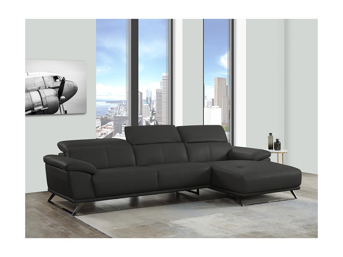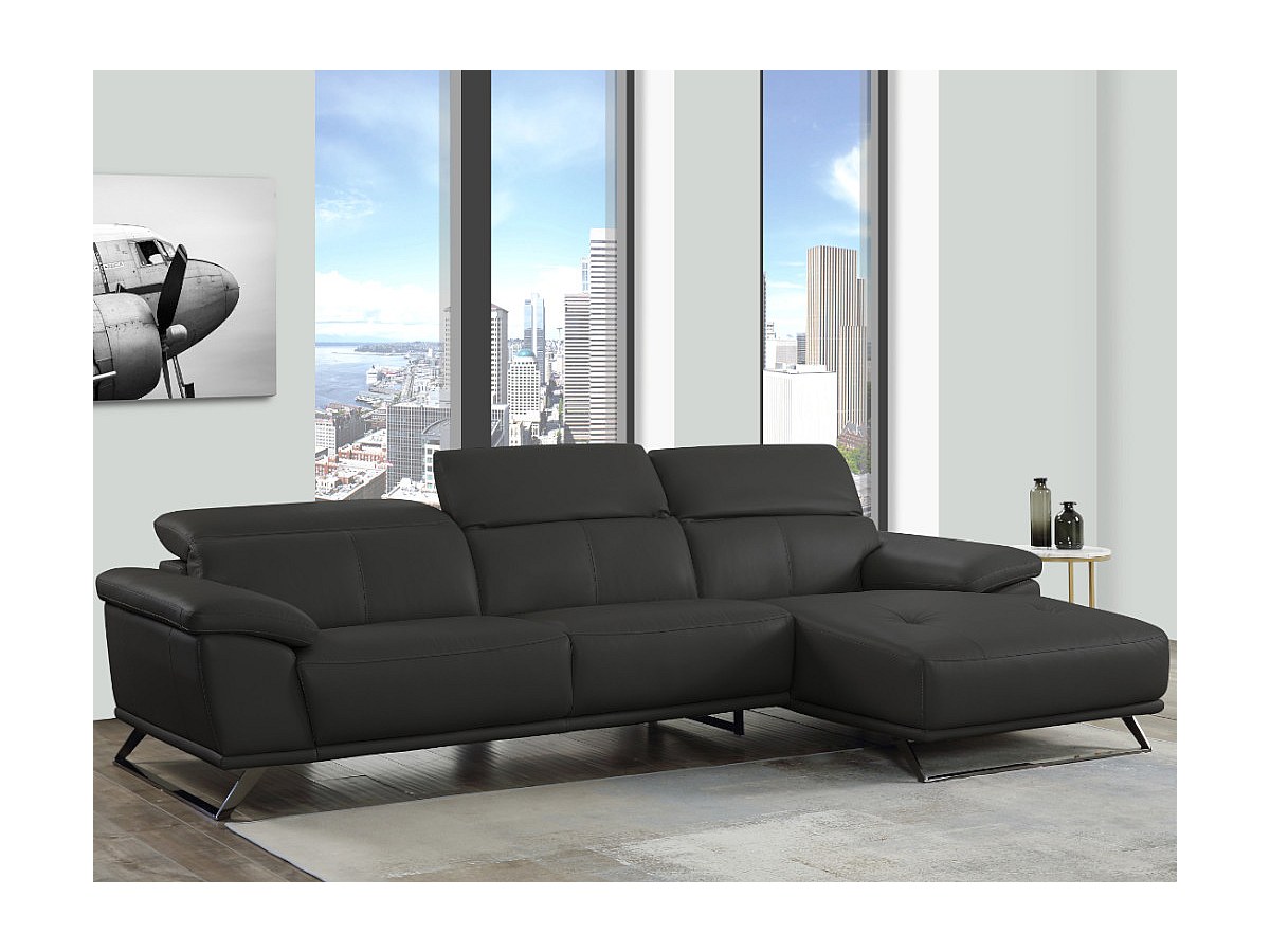 Canapé d'angle en cuir AZIDEE - Noir - Angle droit