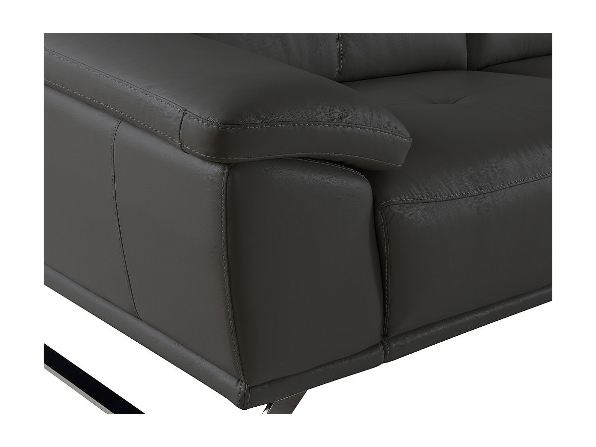 Ce canapé de grande qualité est revêtu de cuir de vachette. Ses accoudoirs travaillés et ses pieds luge en métal chromé finiront de vous convaincre !