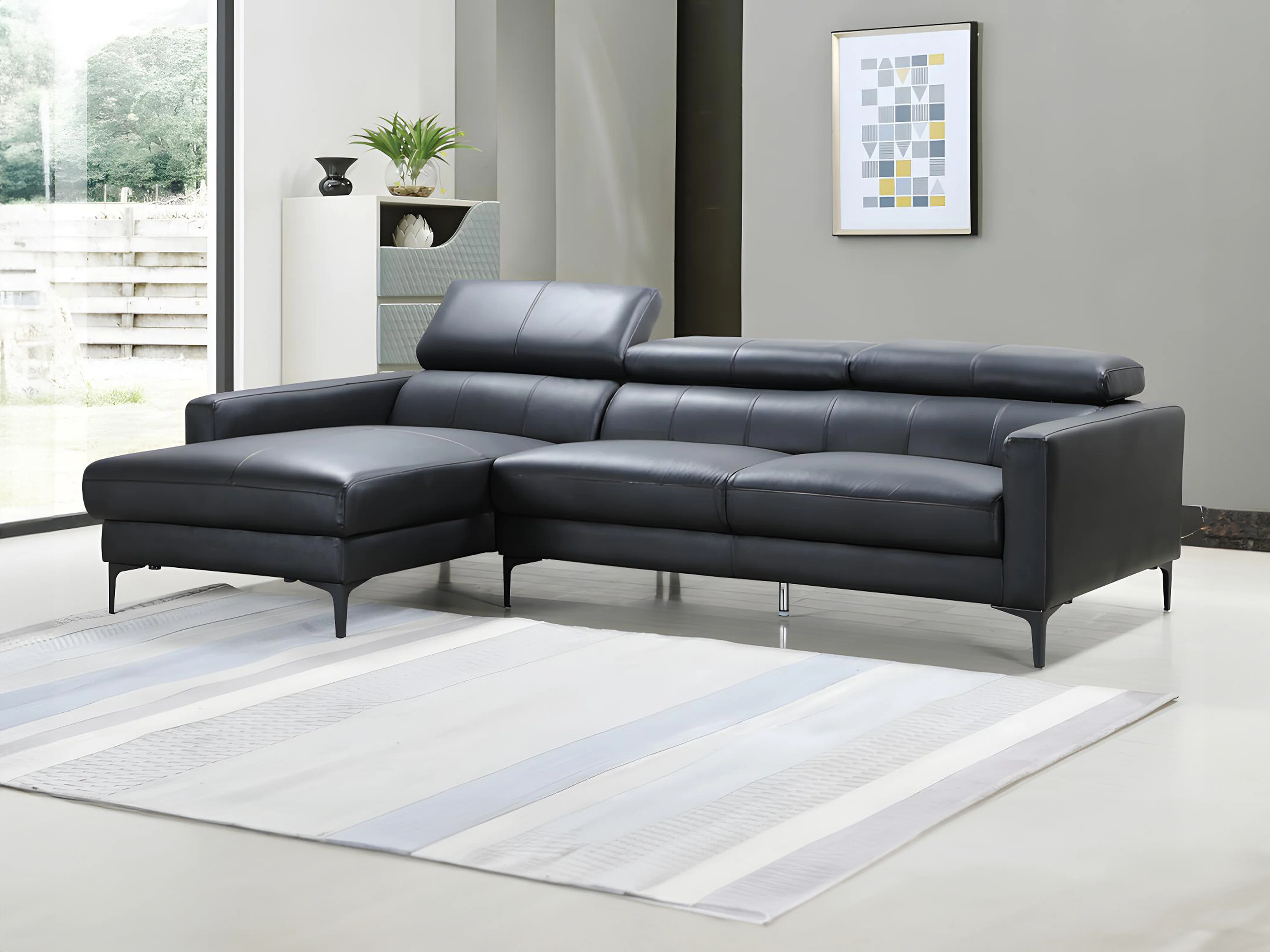 Canapé d'angle en cuir de buffle FLORENCE - Noir - Angle gauche