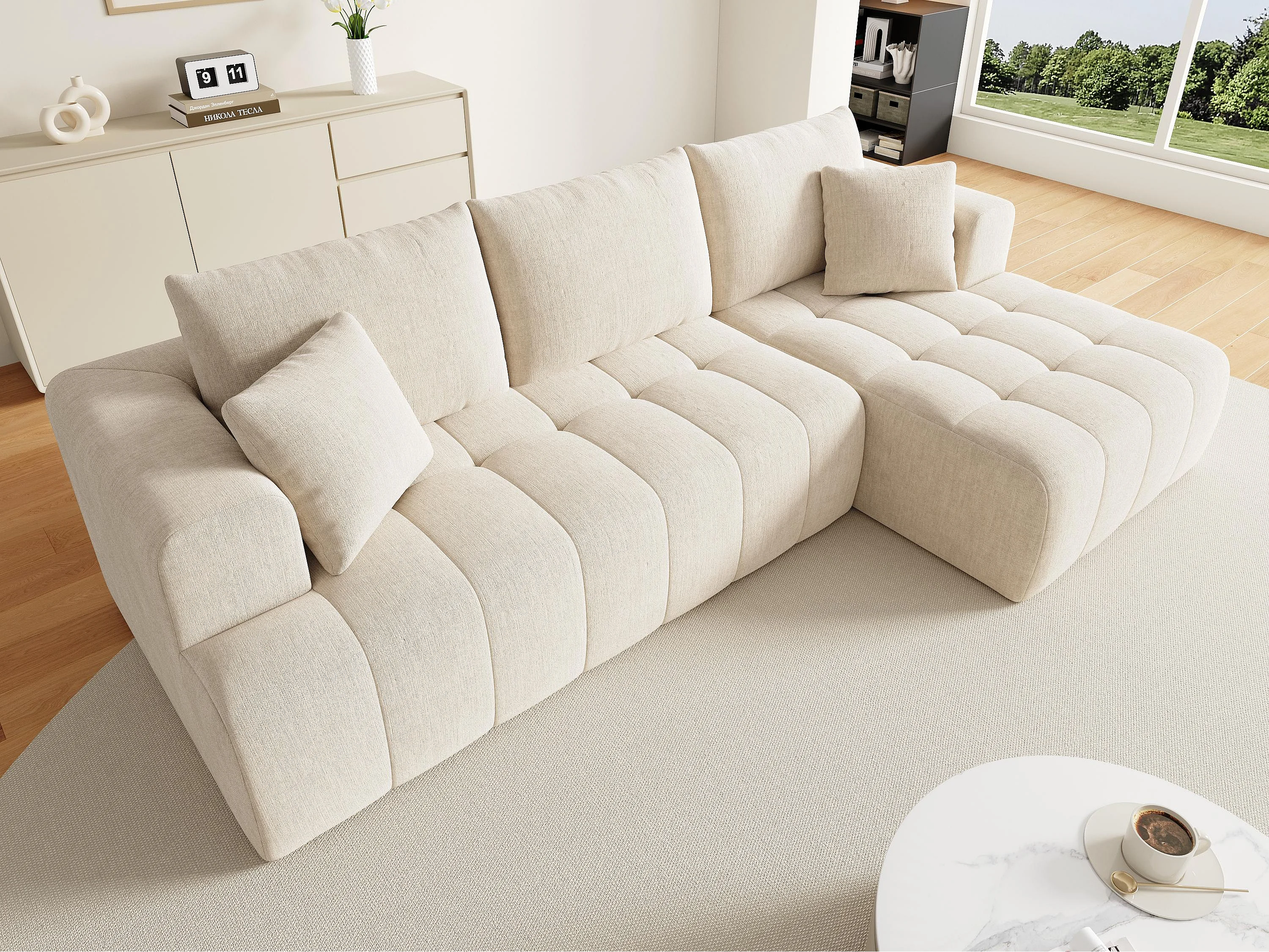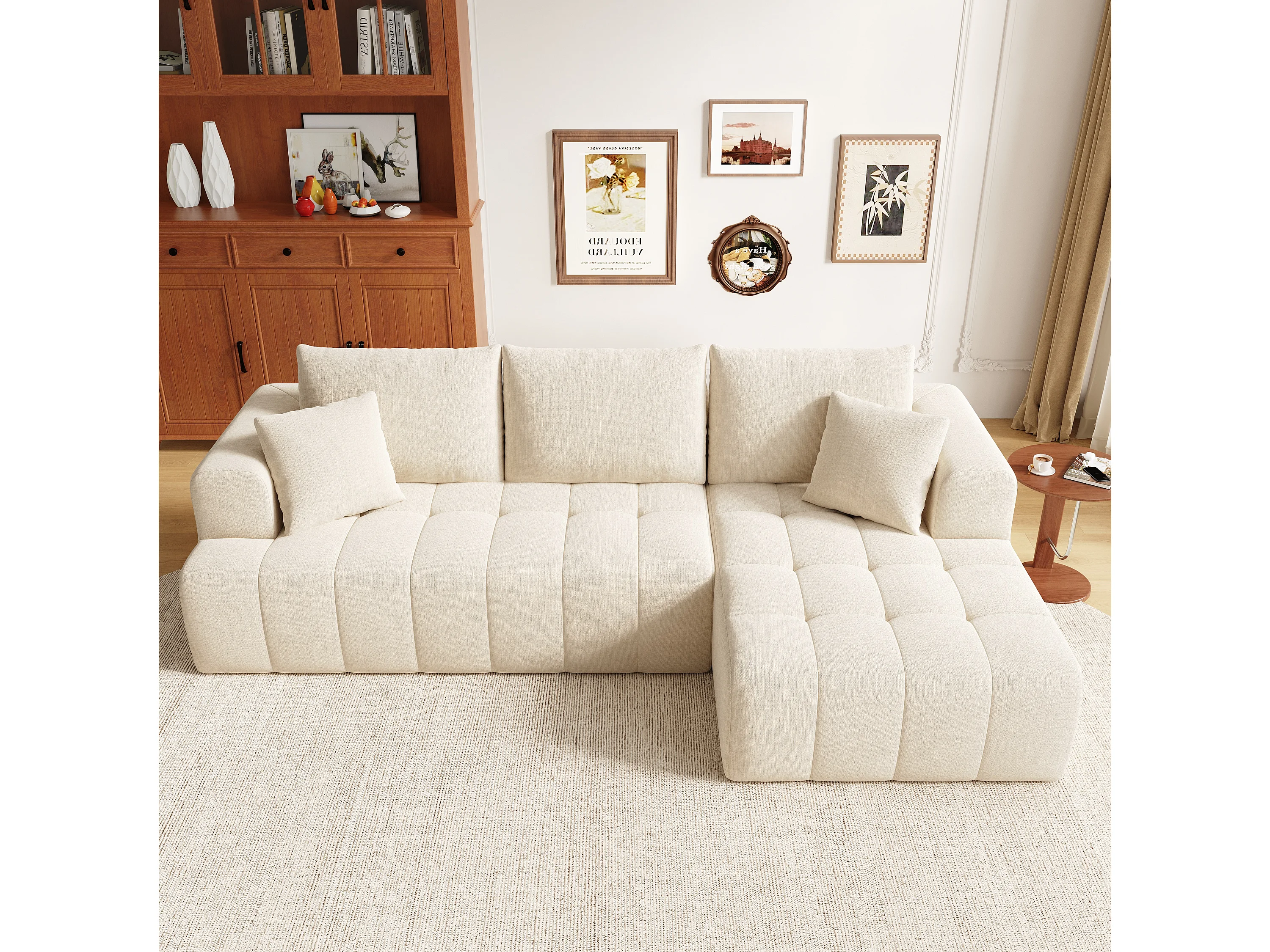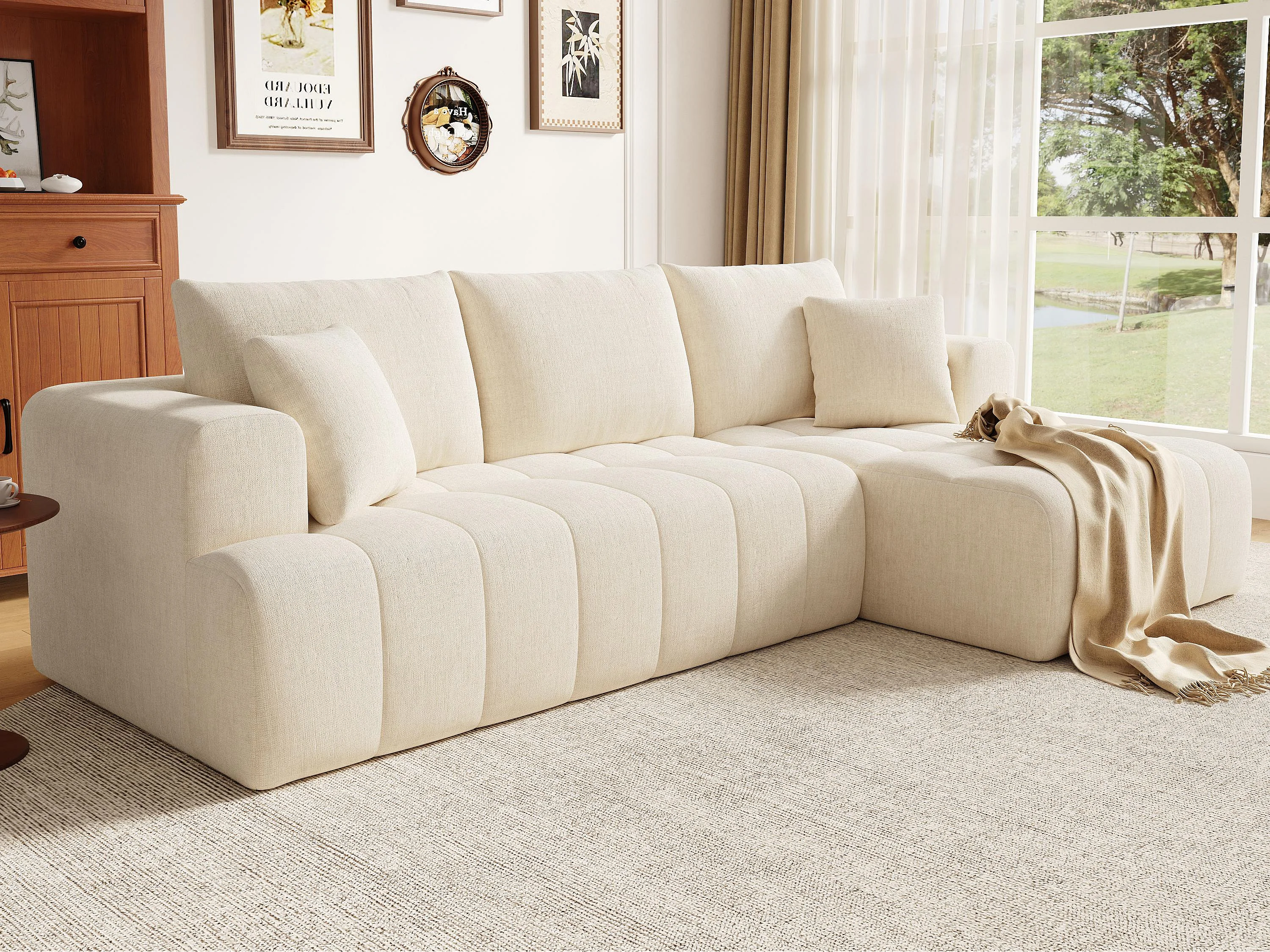 Canapé d'angle en L - 3 places - Canapé Cloud - Combinaison flexible - Aucun montage requis - beige