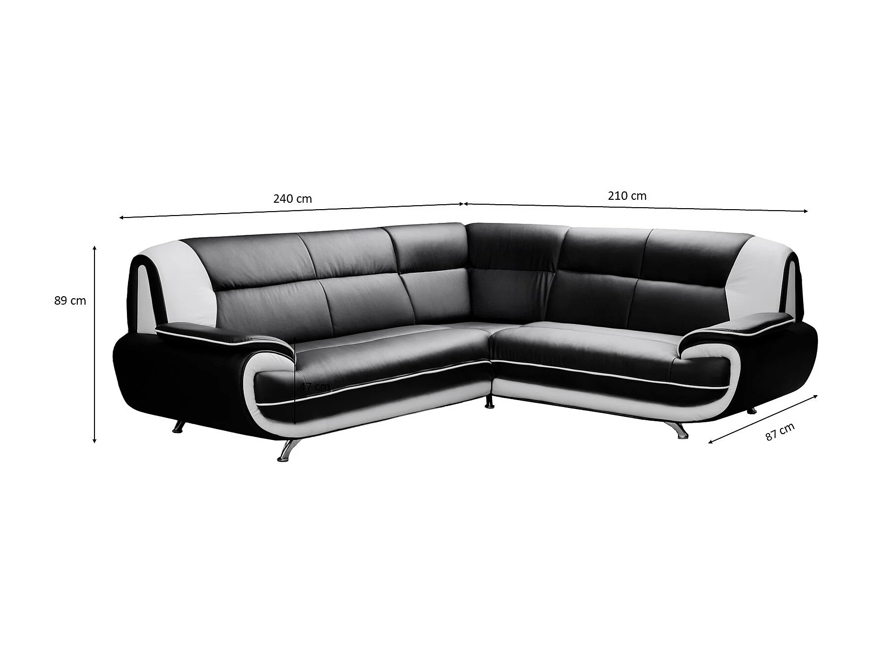 Canapé d’angle en L, tissu Soft, noir + blanc, droite, Palermo