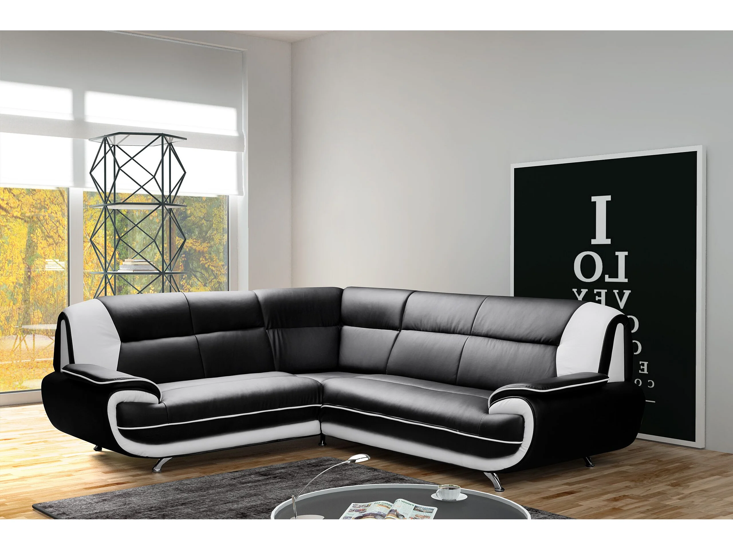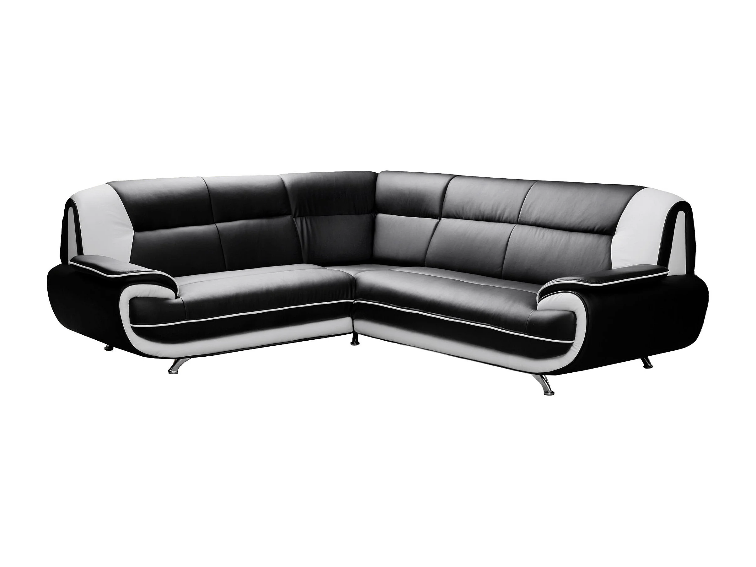 Canapé d’angle en L, tissu Soft, noir + blanc, gauche, Palermo