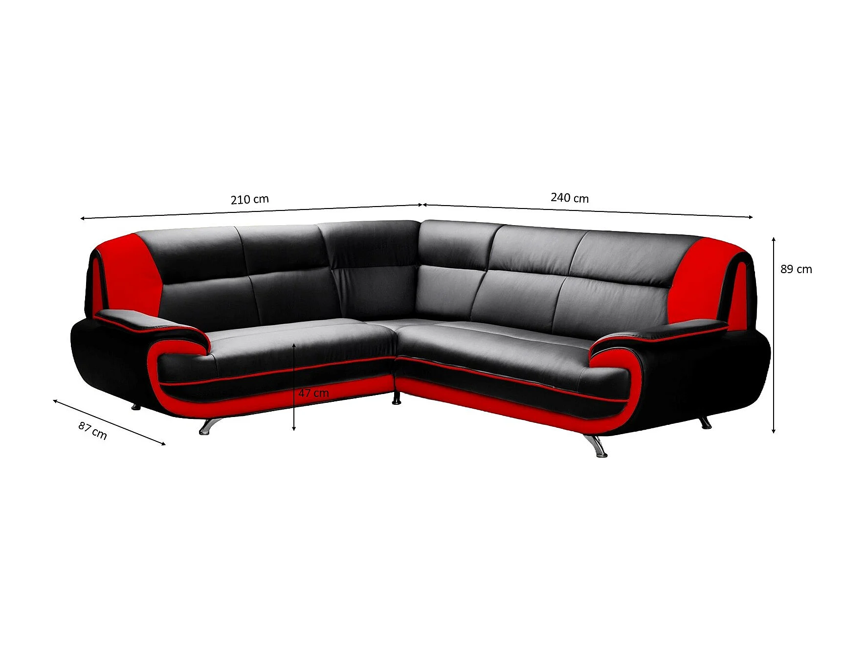 Canapé d’angle en L, tissu Soft, noir + rouge, gauche, Palermo