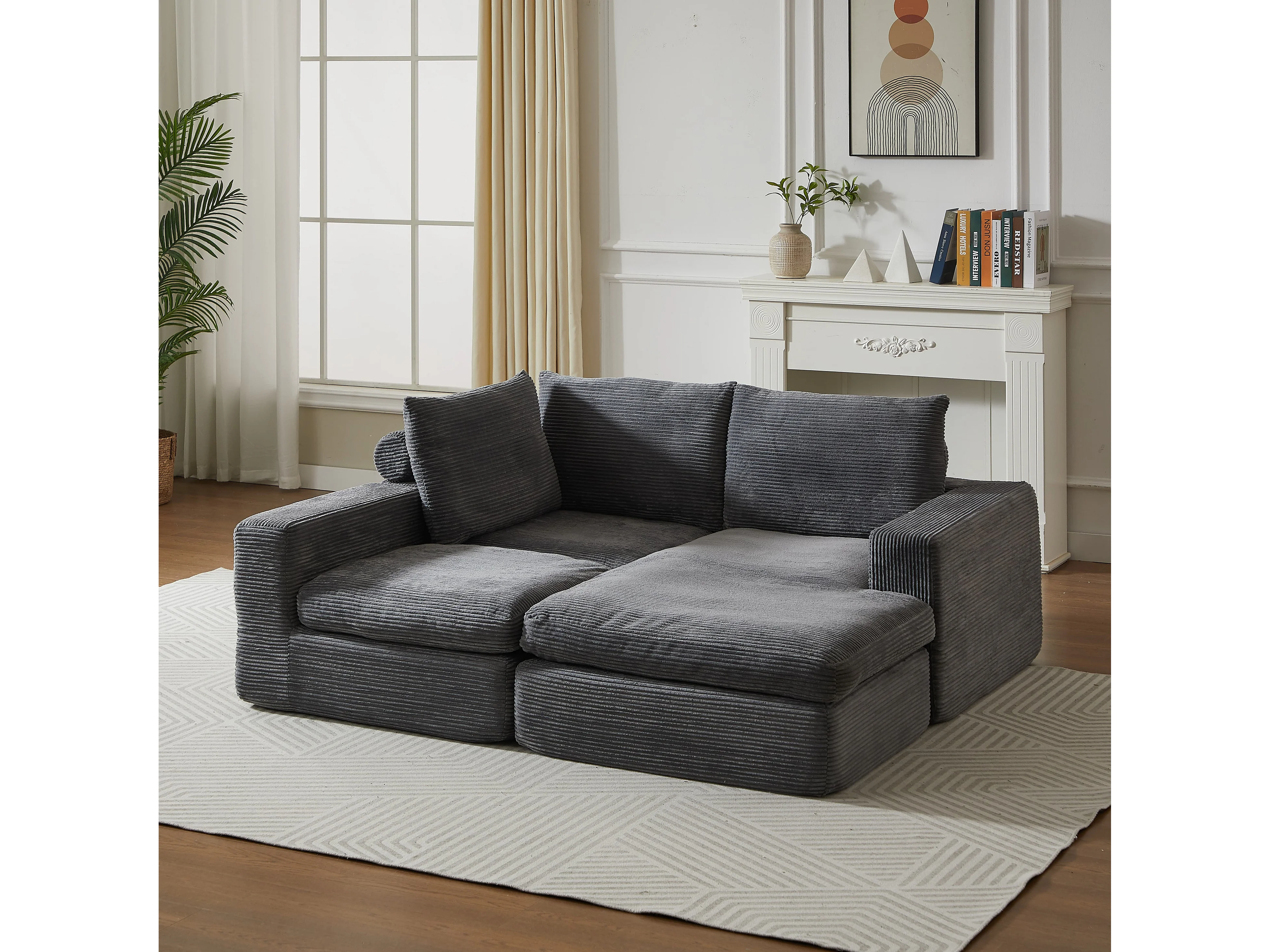 Canape d angle ergonomique coussins cervicaux mousse a memoire velours cotele gris fonce