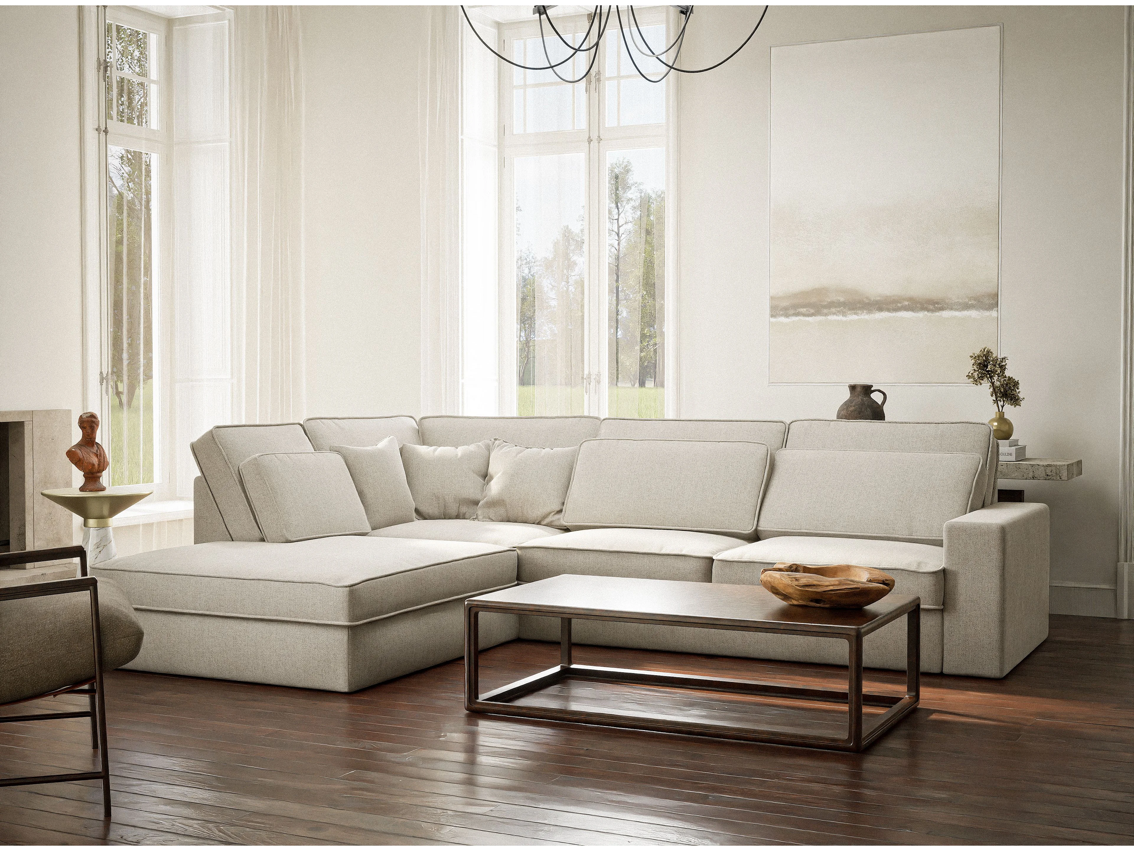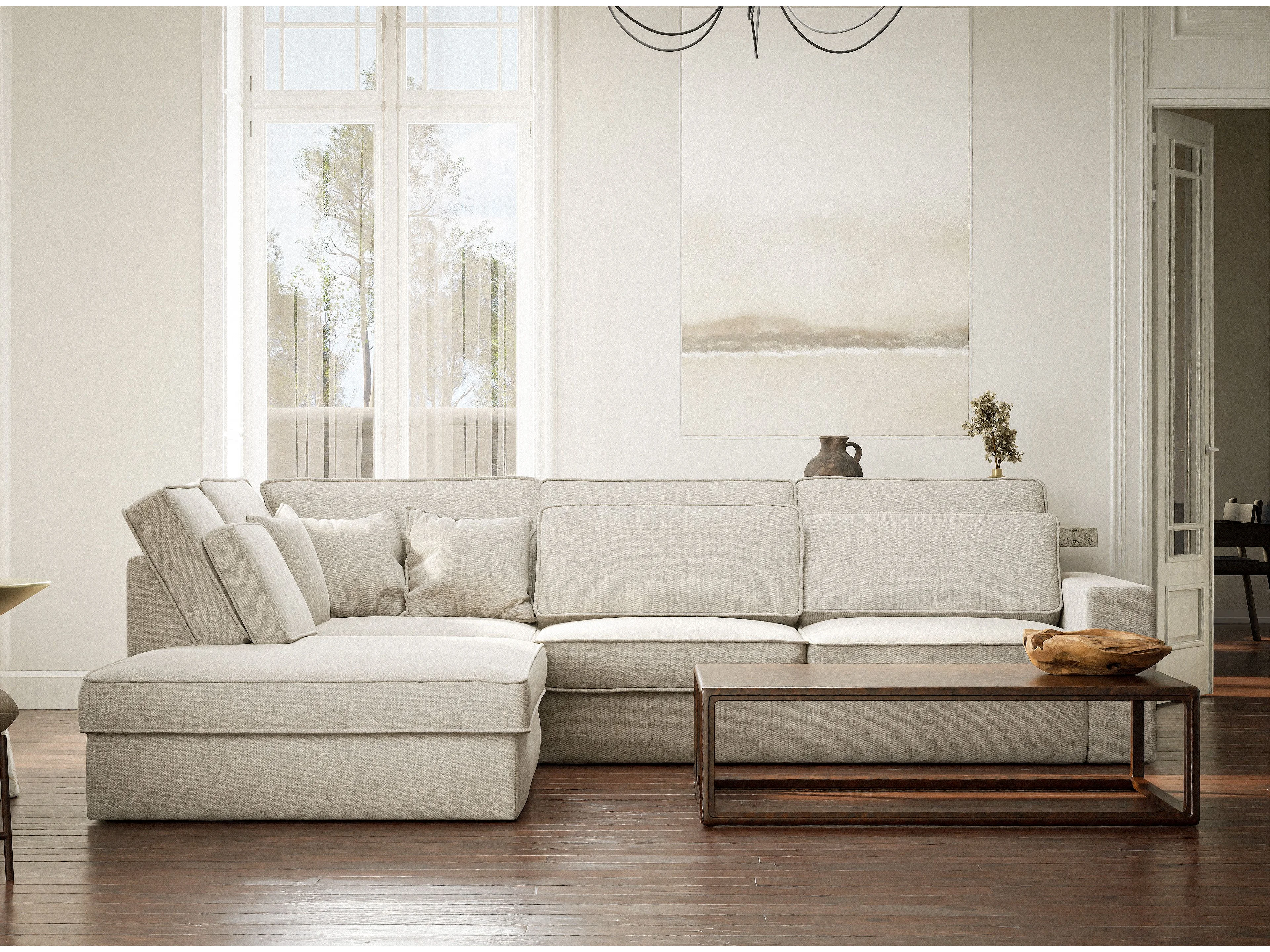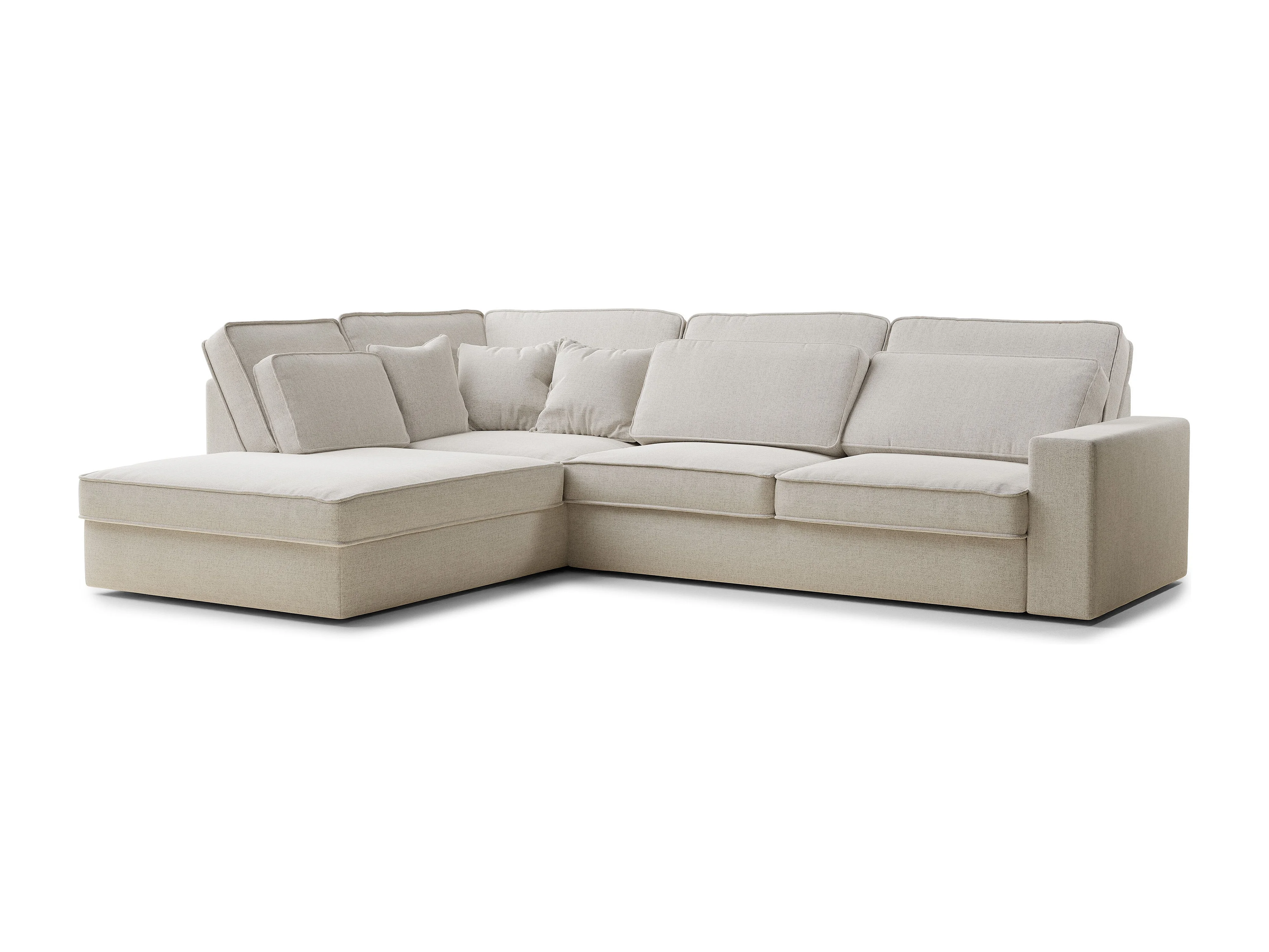 Canapé d'angle gauche 5 places en tissu tressé beige clair KIROU