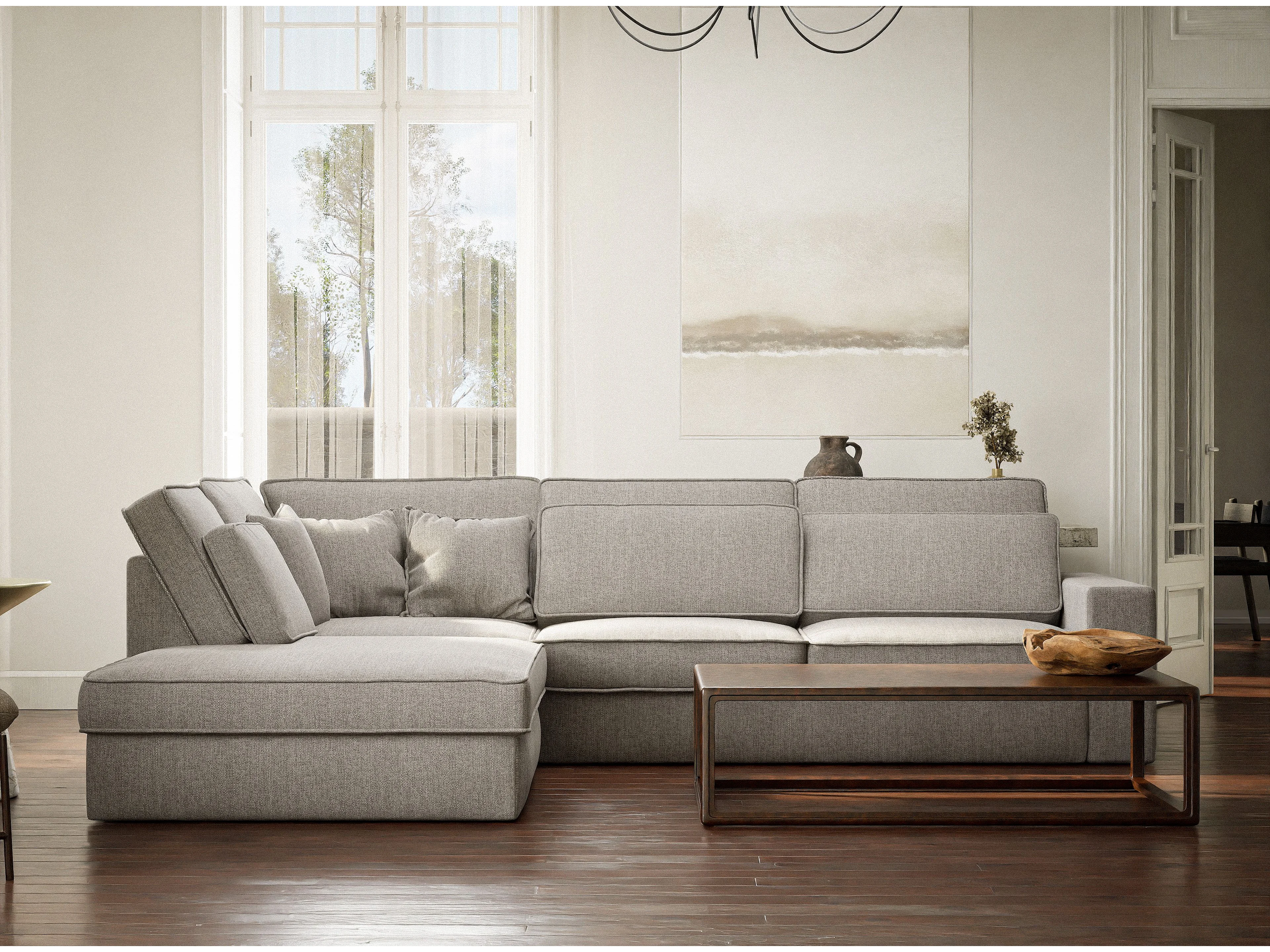 Canapé d'angle gauche 5 places en tissu tressé beige gris KIROU