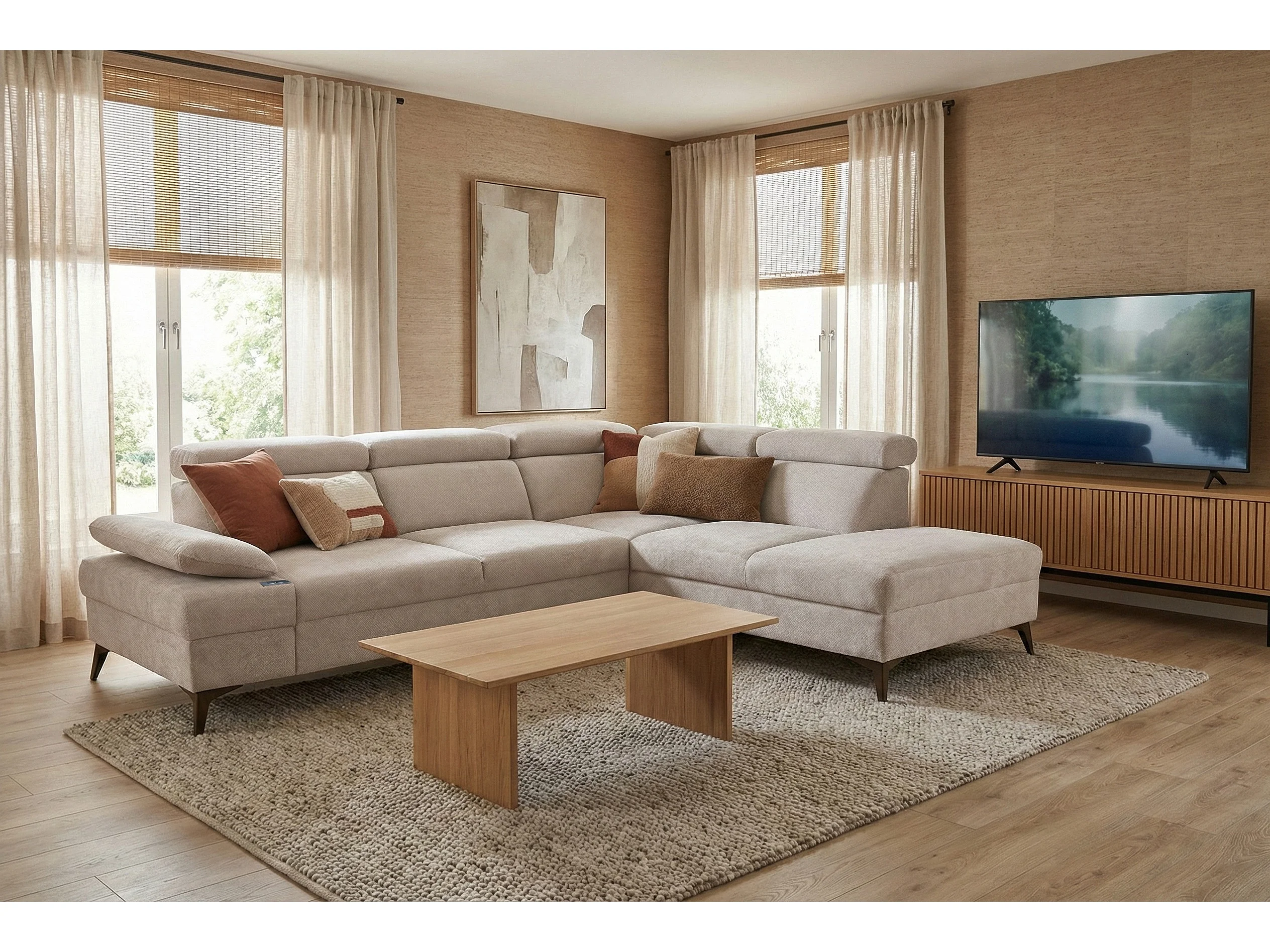 Canapé d’angle moderne Vigo avec fonction RELAX et appuie-têtes réglables – idéal pour le salon