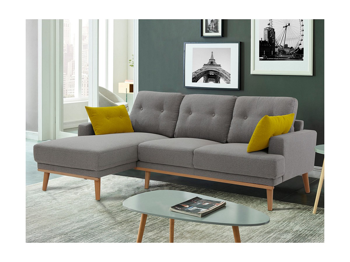 Canapé d'angle en tissu RAOUT - Gris - Angle gauche