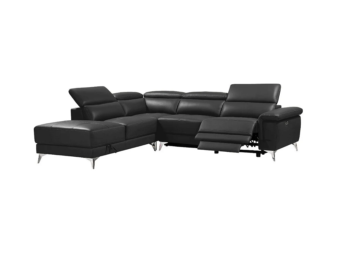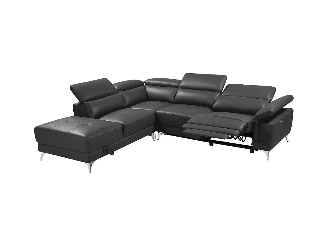 Canapé d'angle gauche relax électrique en cuir gris anthracite PASCALINE