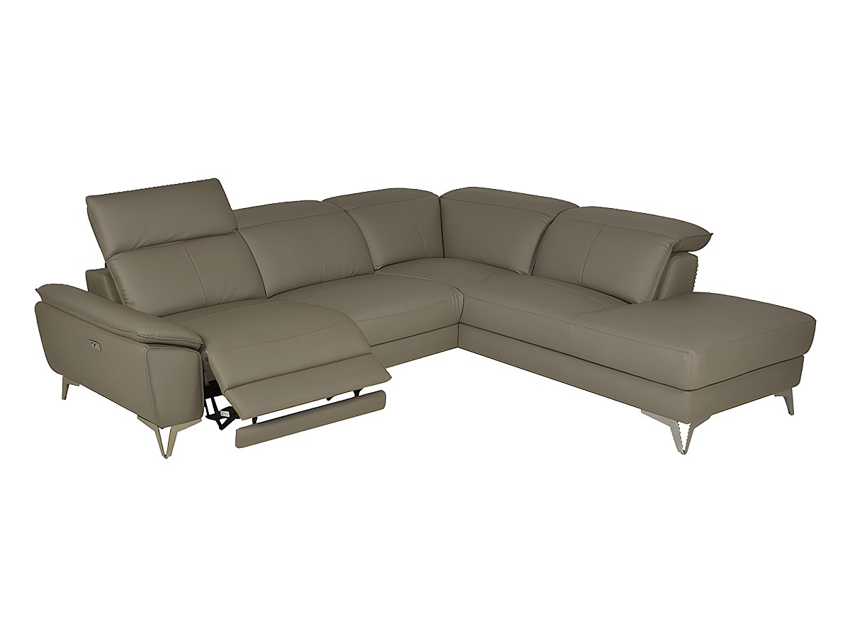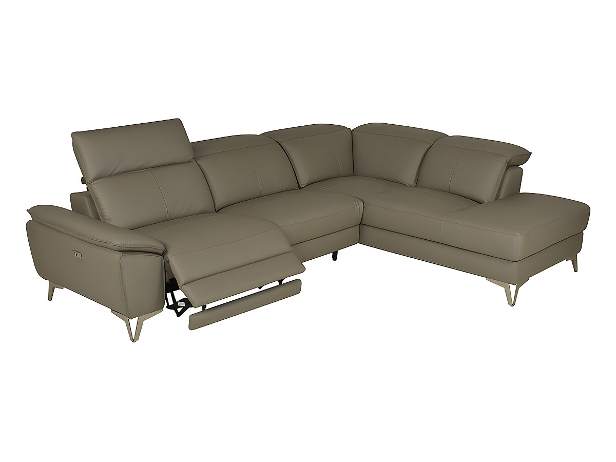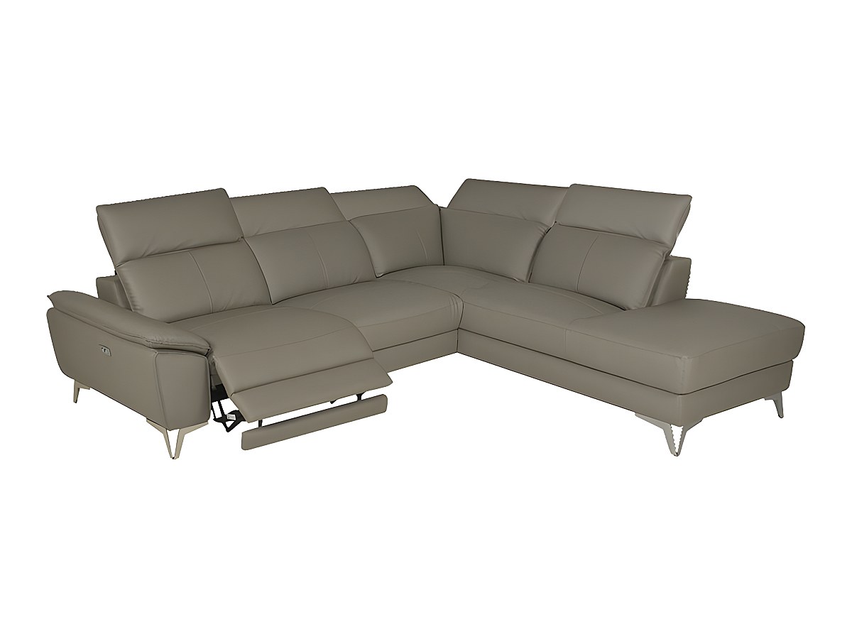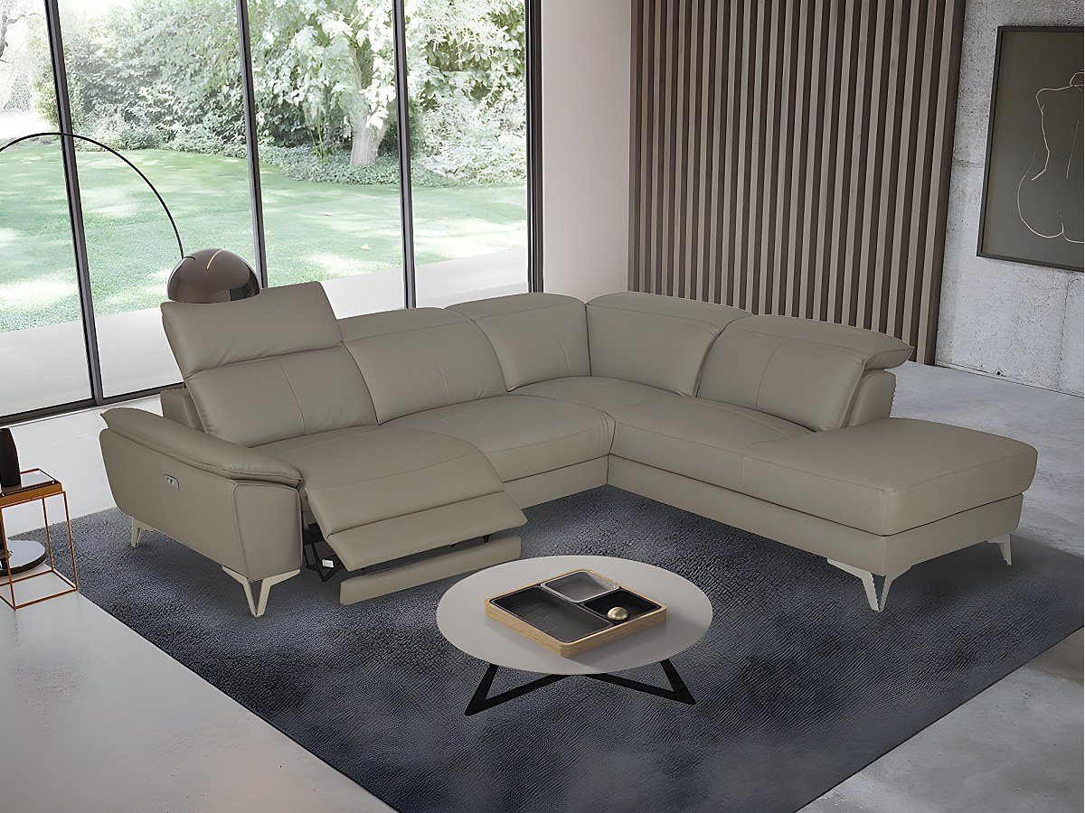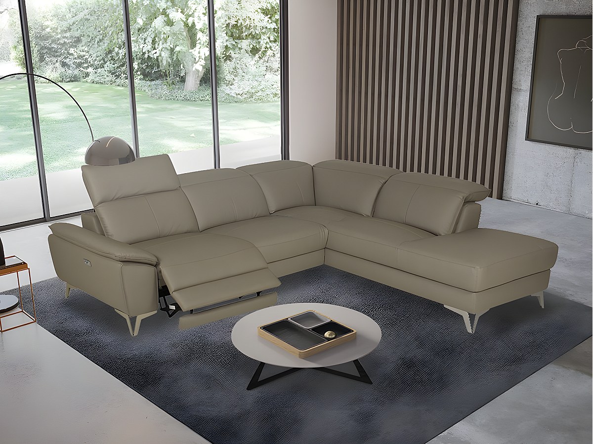 Canapé d'angle relax électrique en cuir SPARTE - Taupe - Angle droit