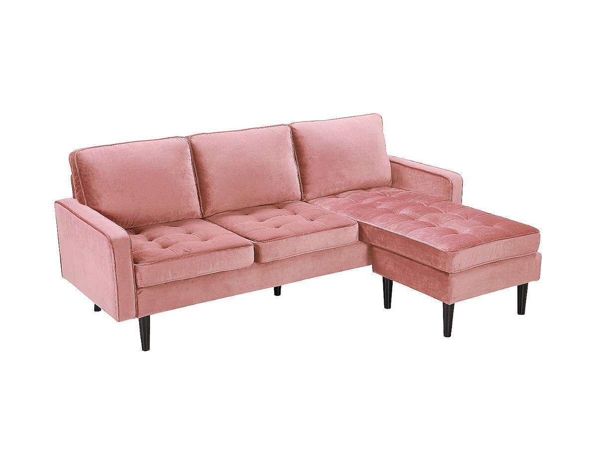Canapé d'angle réversible en velours FLEUET - Vieux rose