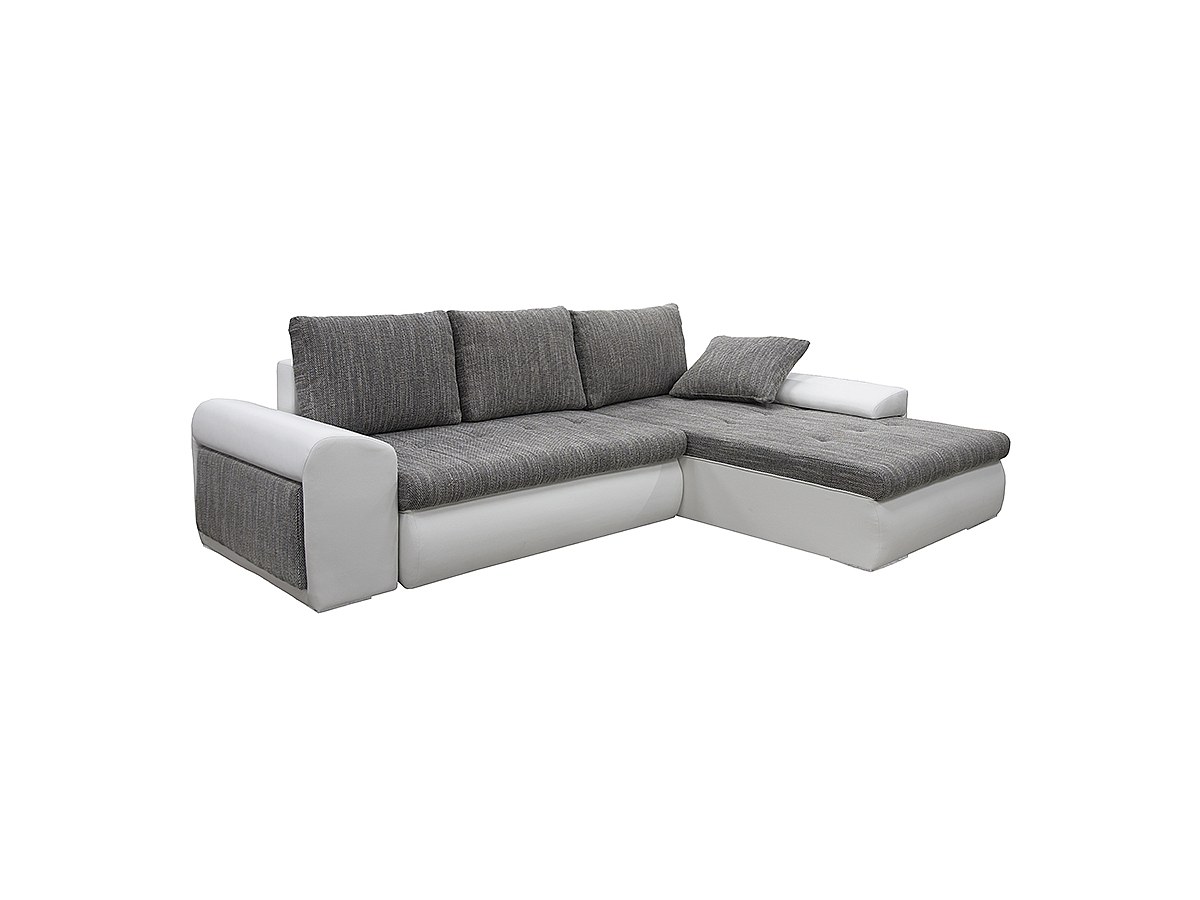 Canapé d'angle réversible et convertible bimatière MISSISSIPPI - Gris chiné et blanc