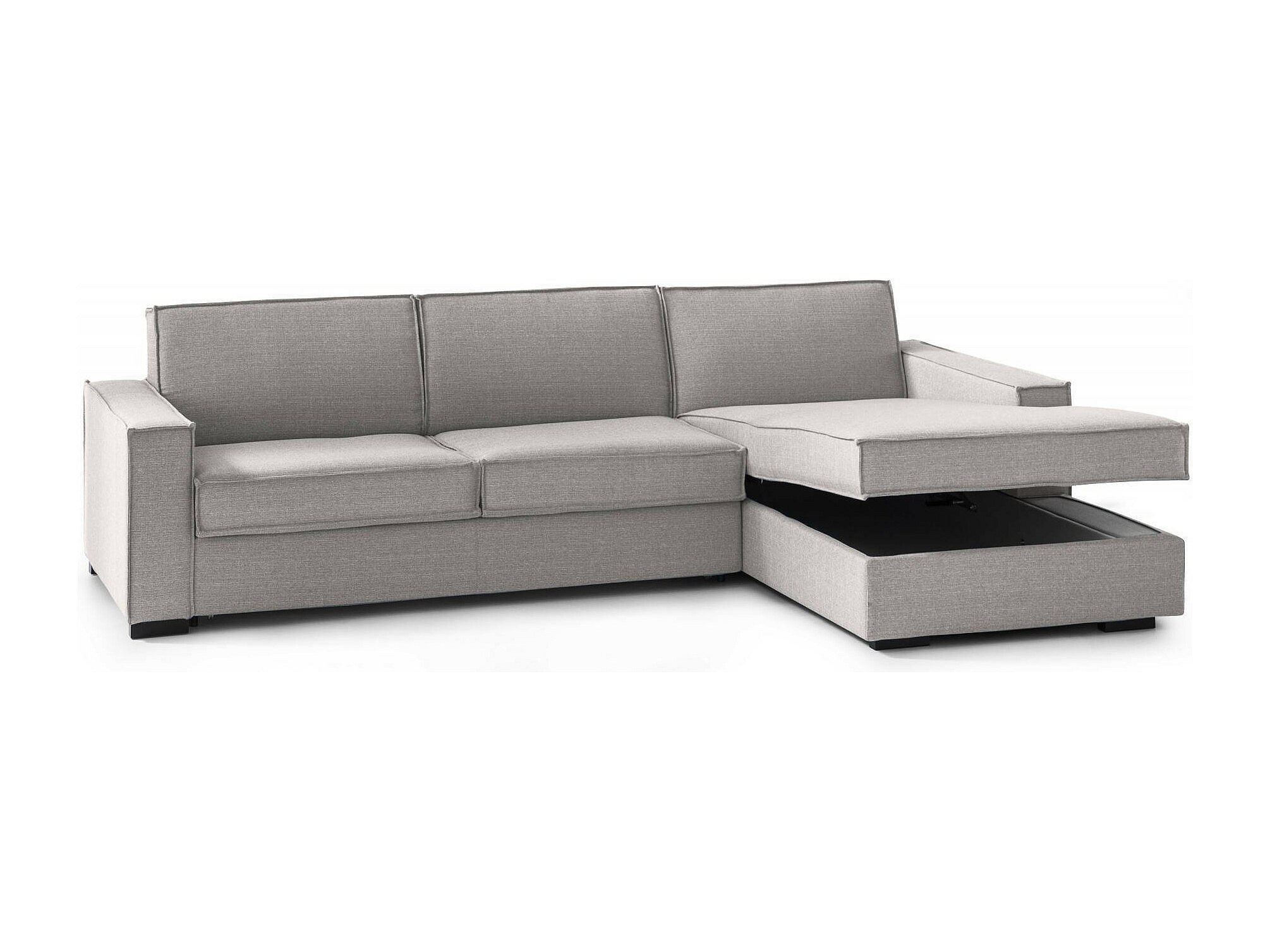 Canapé-lit Daaki, Canapé d'angle, 100% Made in Italy, Canapé avec ouverture pivotante, Péninsule de rangement droite, avec accoudoirs fins, 260x95h90 cm, Gris