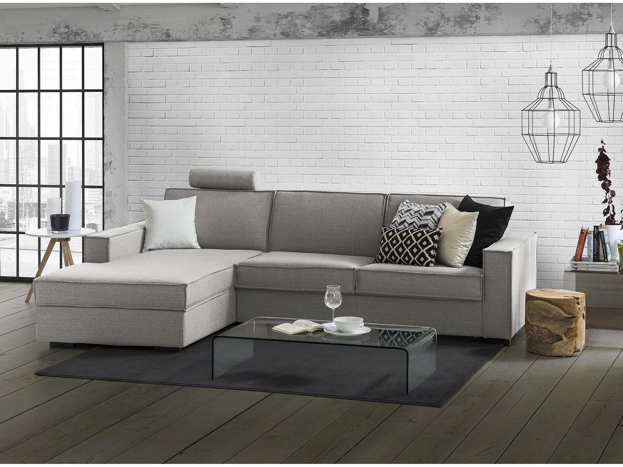 Canapé Daalber, Canapé d'angle, 100% Made in Italy, Canapé avec ouverture pivotante, Péninsule de conteneur gauche, avec accoudoirs standards, Cm 280x95h90, Gris