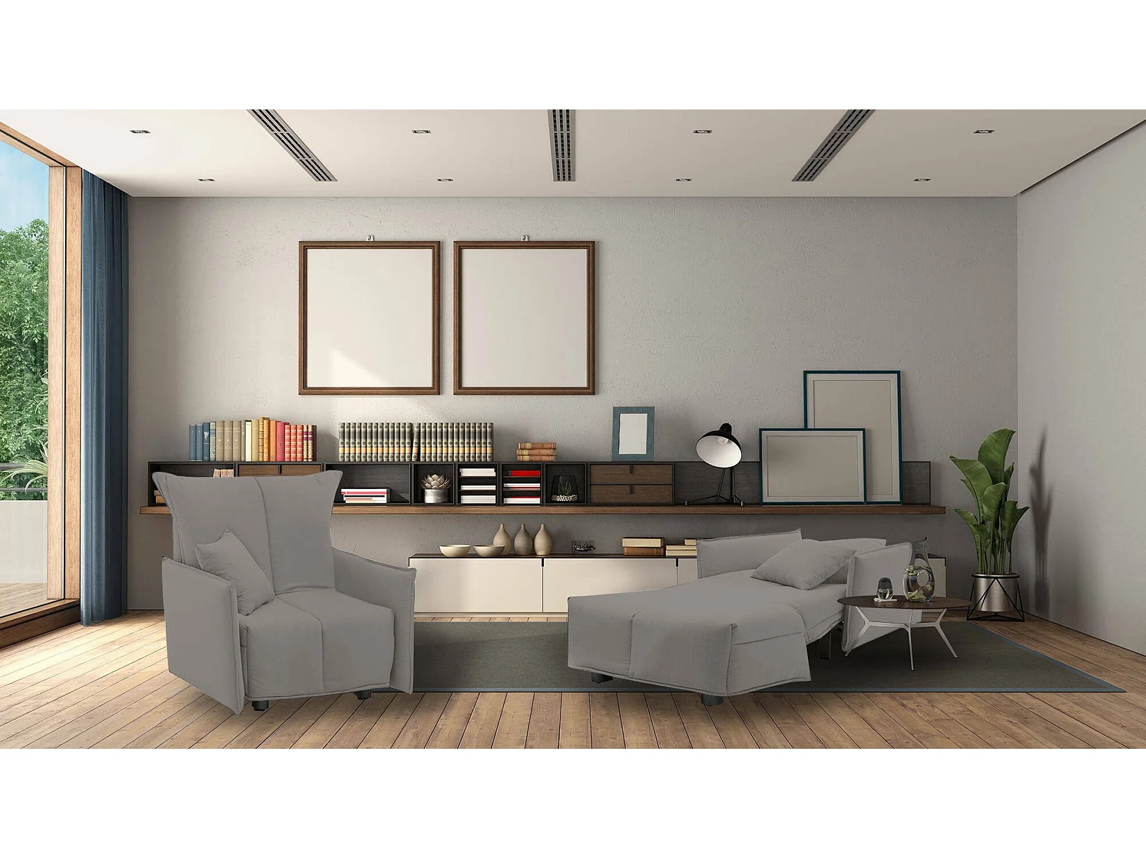 Canapé-lit Dabargi, Canapé simple, 100% Made in Italy, Fauteuil de salon avec ouverture trolley, en tissu rembourré, avec coussins inclus, 85x90h85 cm, Couleur gris
