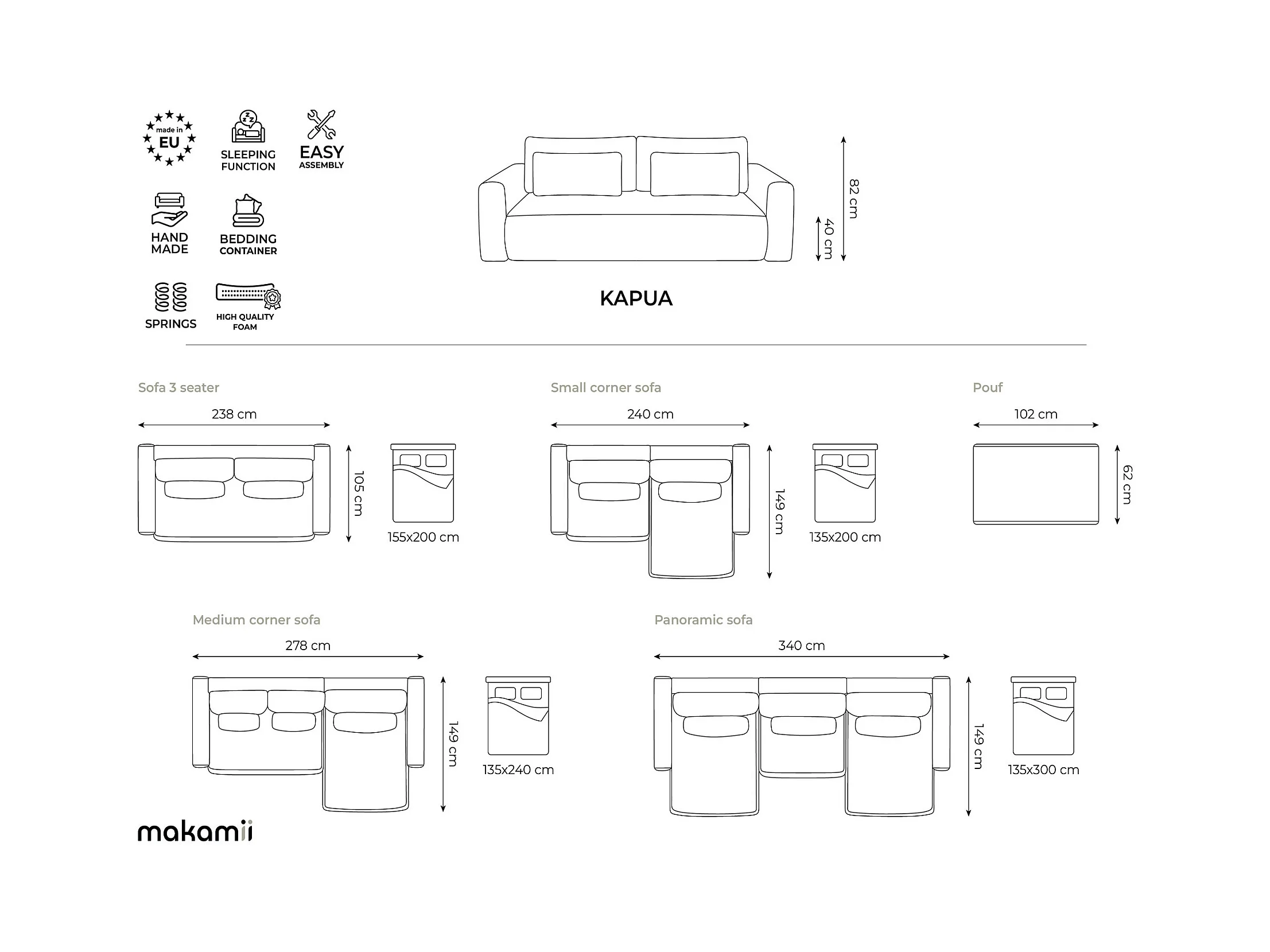 Canapé d’angle 2,5 places droit convertible en tissu texturé - gris - KAPUA
