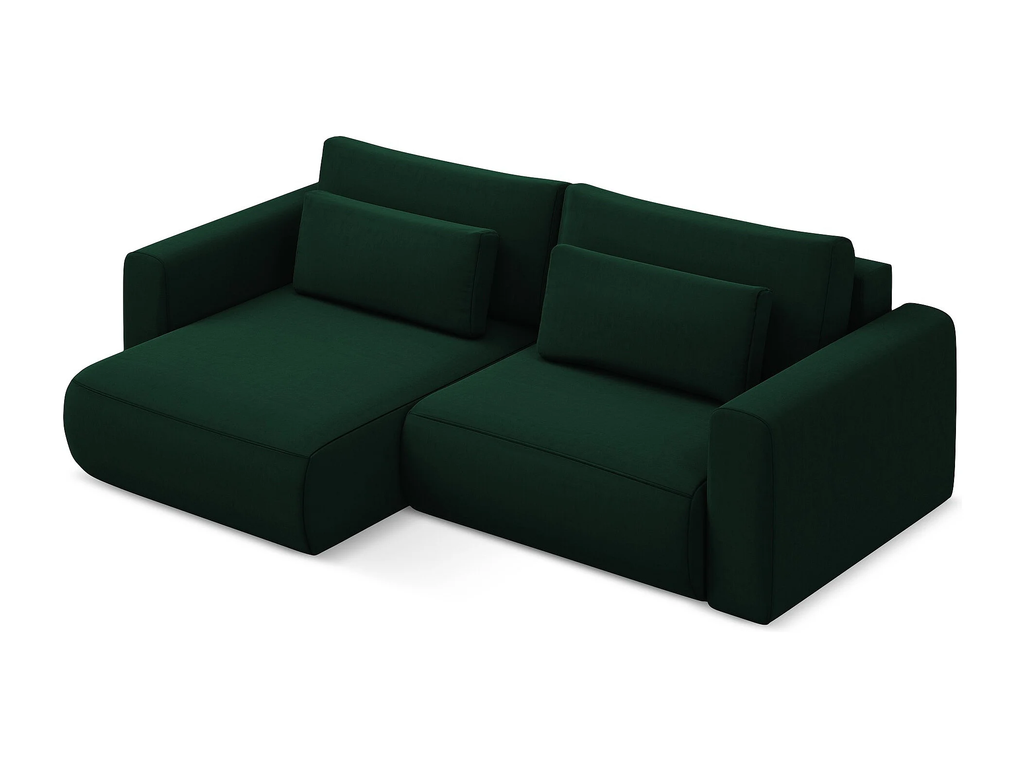 Canapé d’angle 2,5 places gauche convertible en velours - bouteille verte - KAPUA
