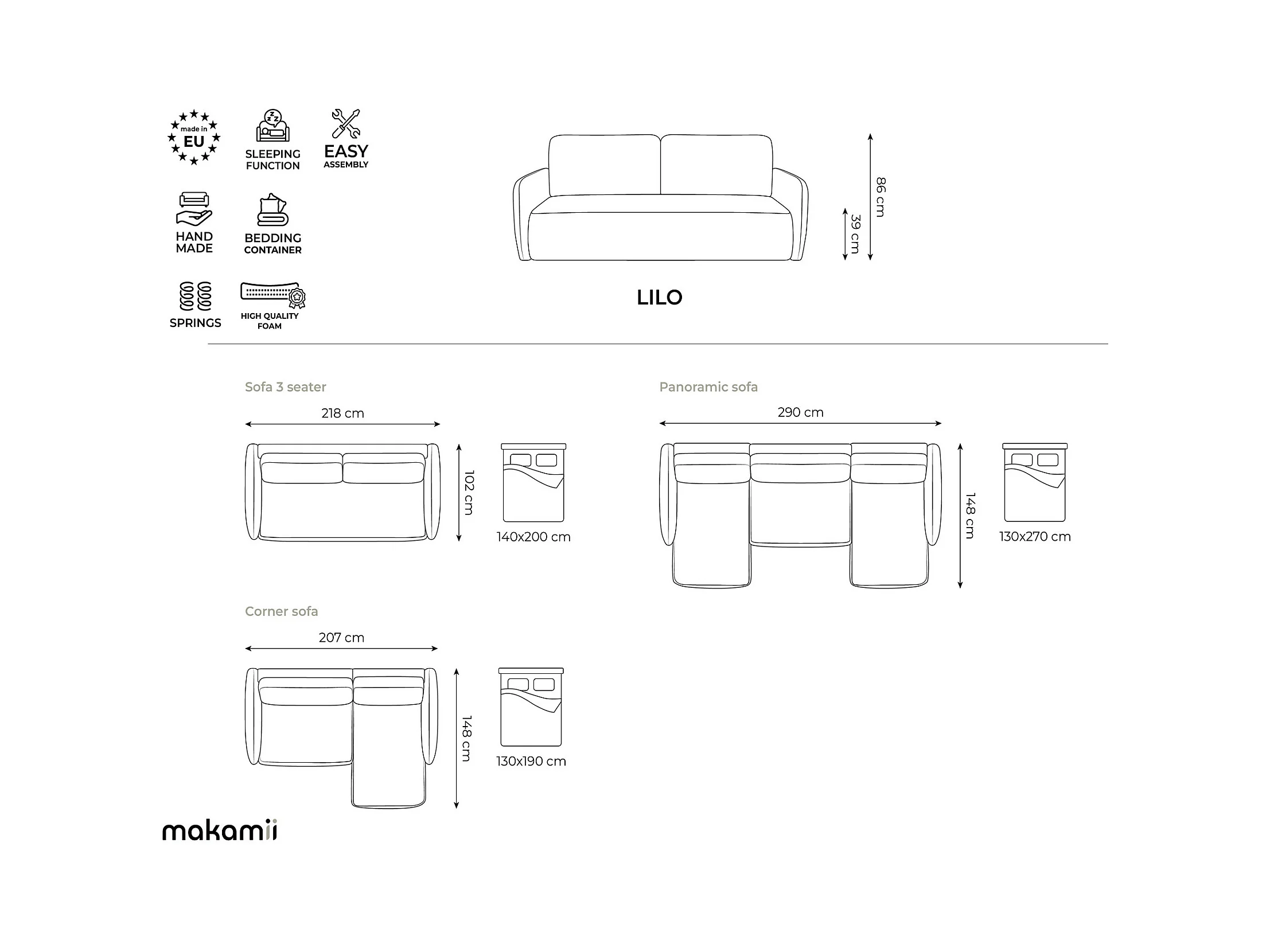 Canapé d’angle 3 places gauche convertible en tissu chenille - perle - LOHI