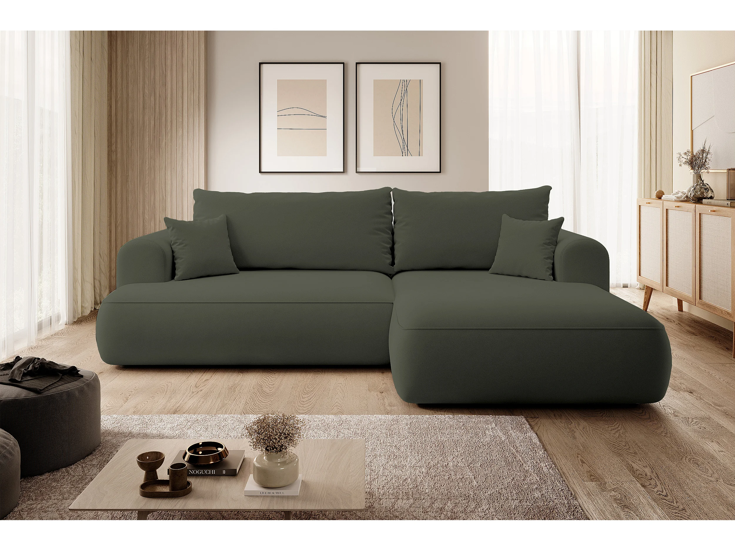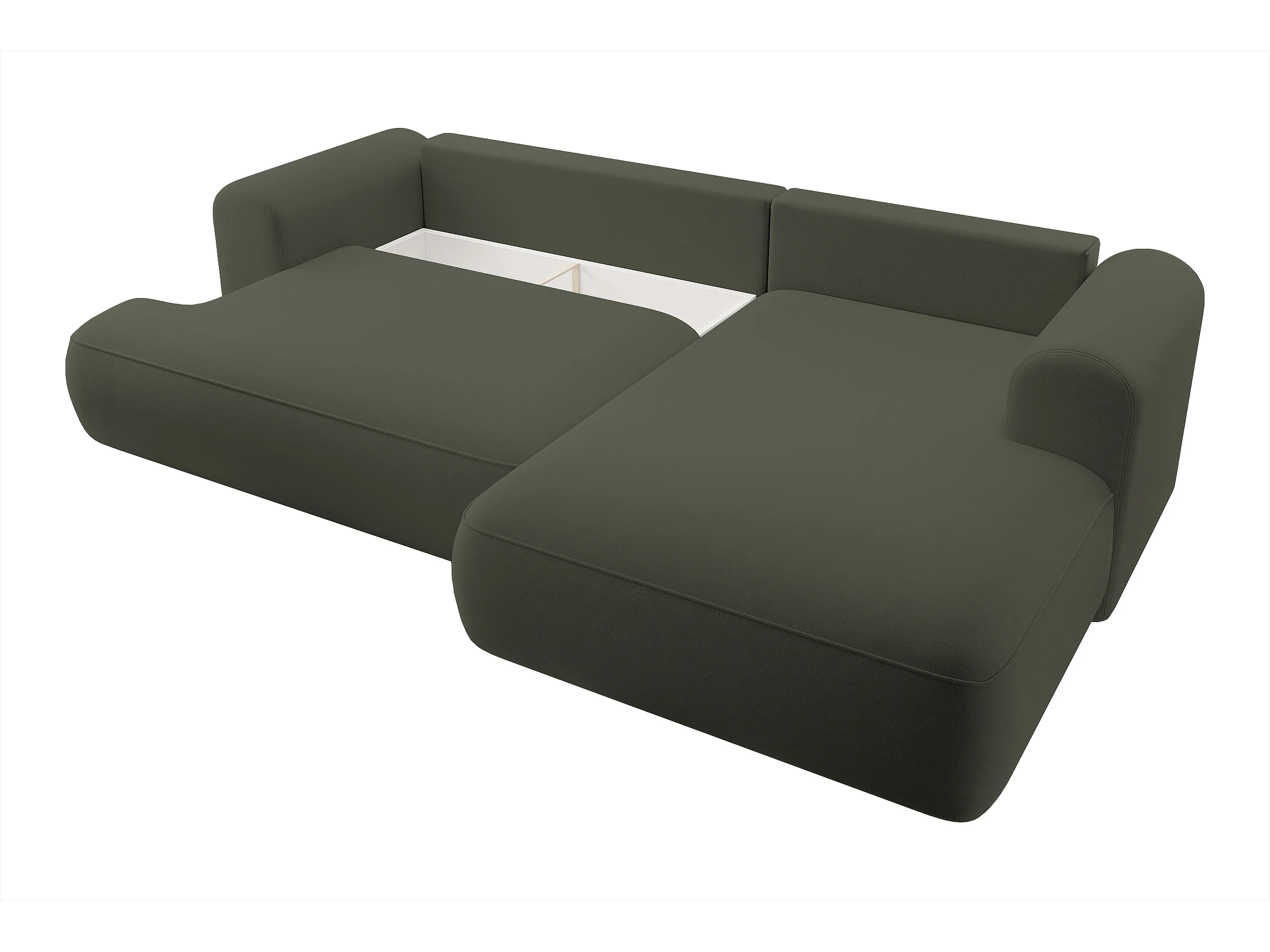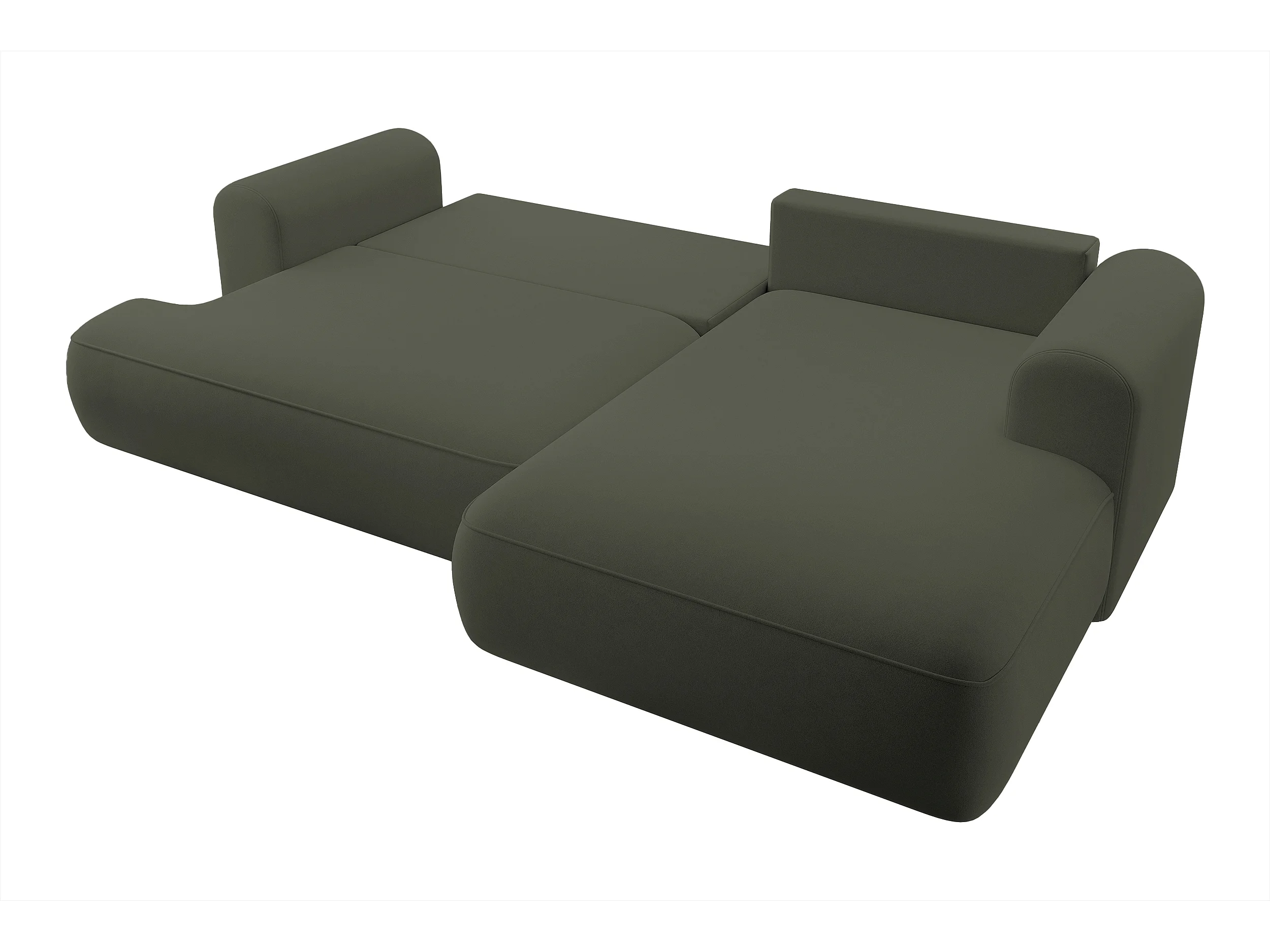 Canapé d'angle - 260 cm - avec fonction de couchage en forme de L - avec coffre - olive velours - côté droit - OVO
