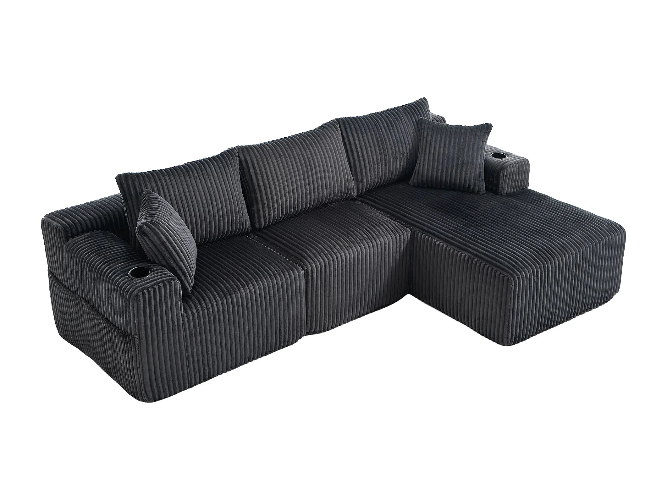 Canapé d'angle 3 places, 257 x 160 x 62, rangement, pour salon, appartement et studio, Corduroy gris