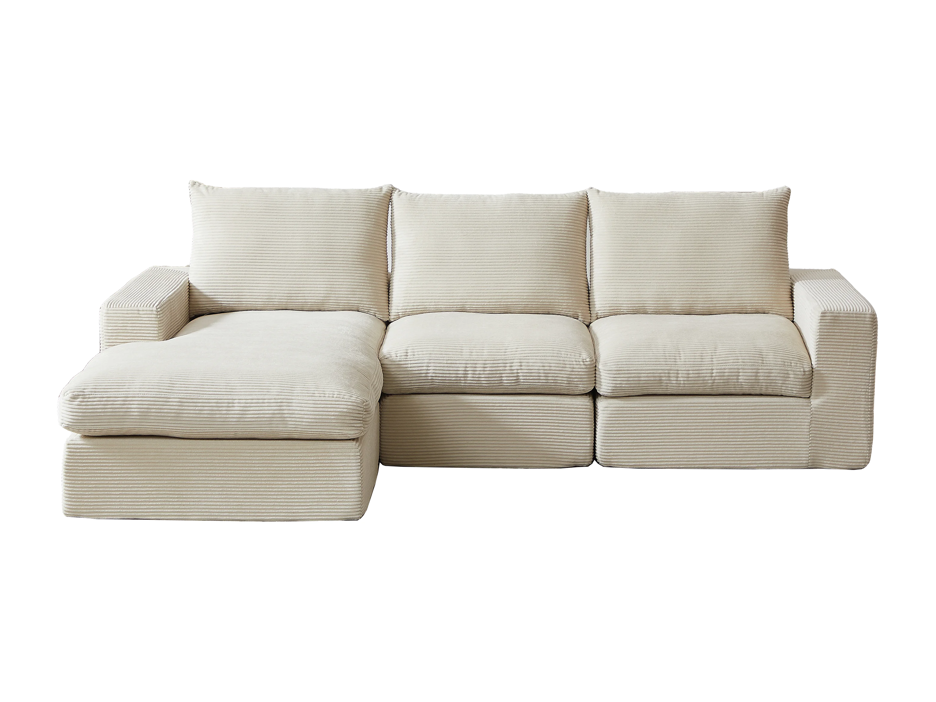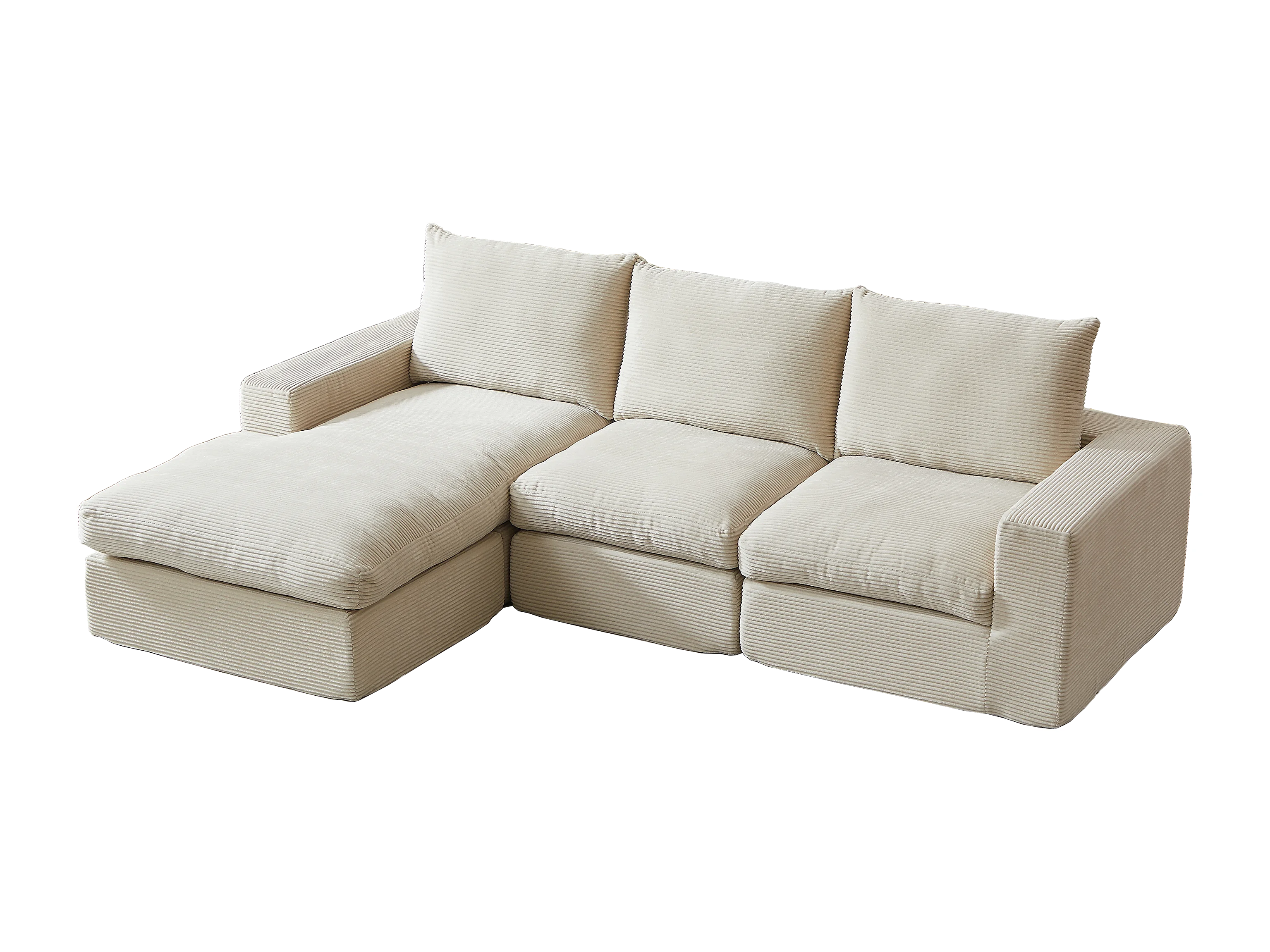 Canapé d'angle 3 places avec méridienne et 3 coussins - Velours côtelé beige