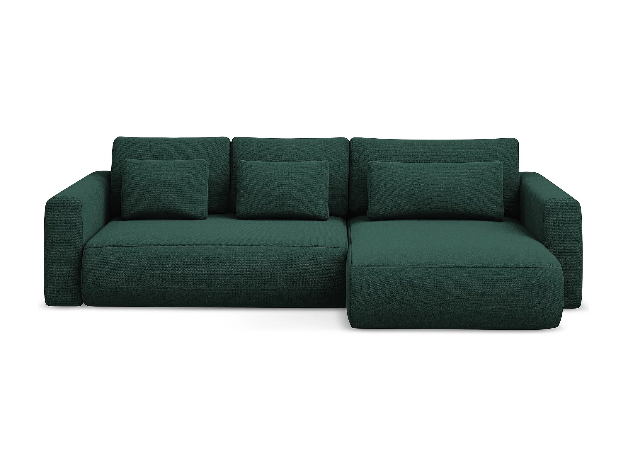 Canapé d'angle droit convertible en tissu chenille - bouteille verte - KAILA