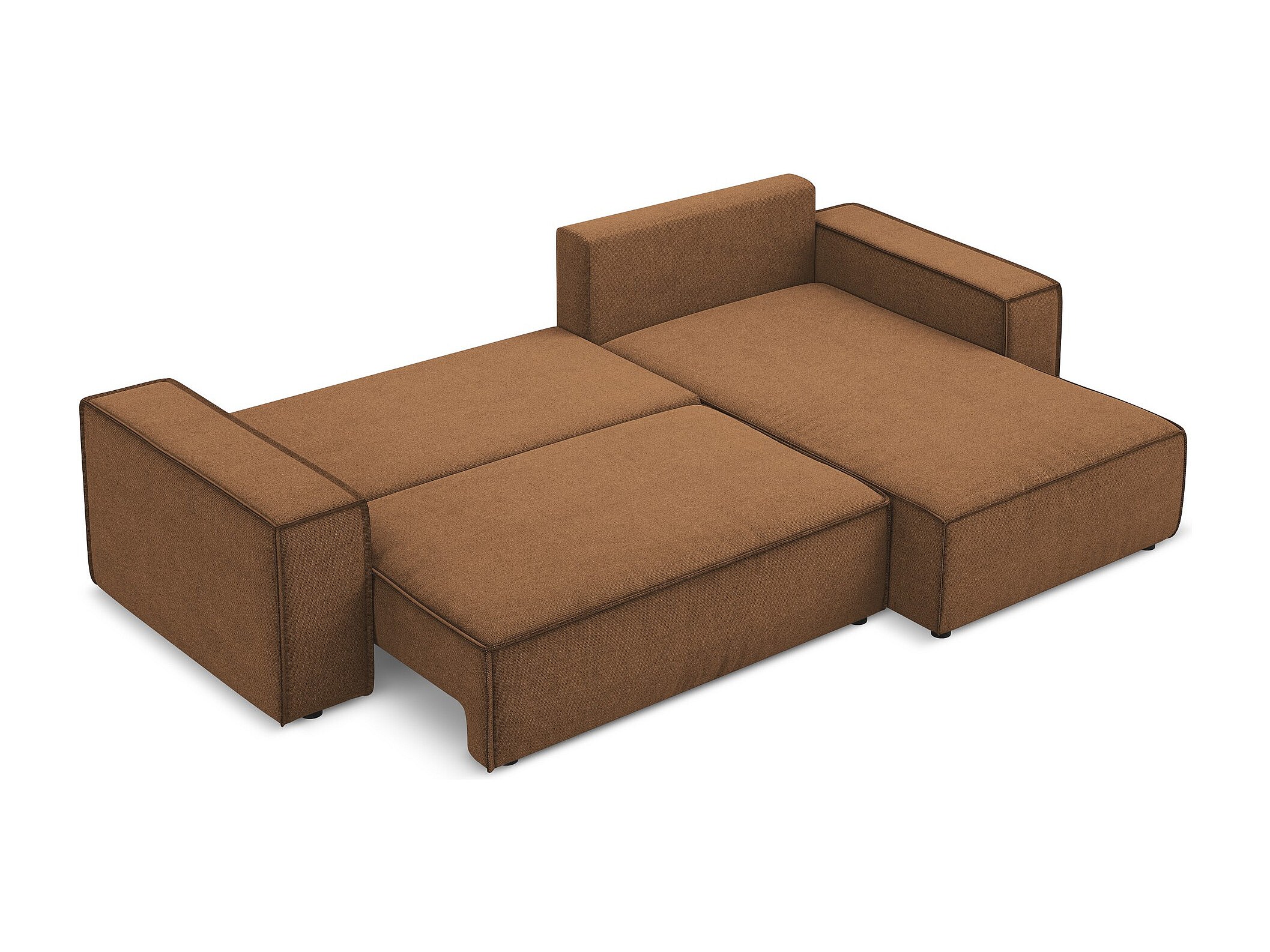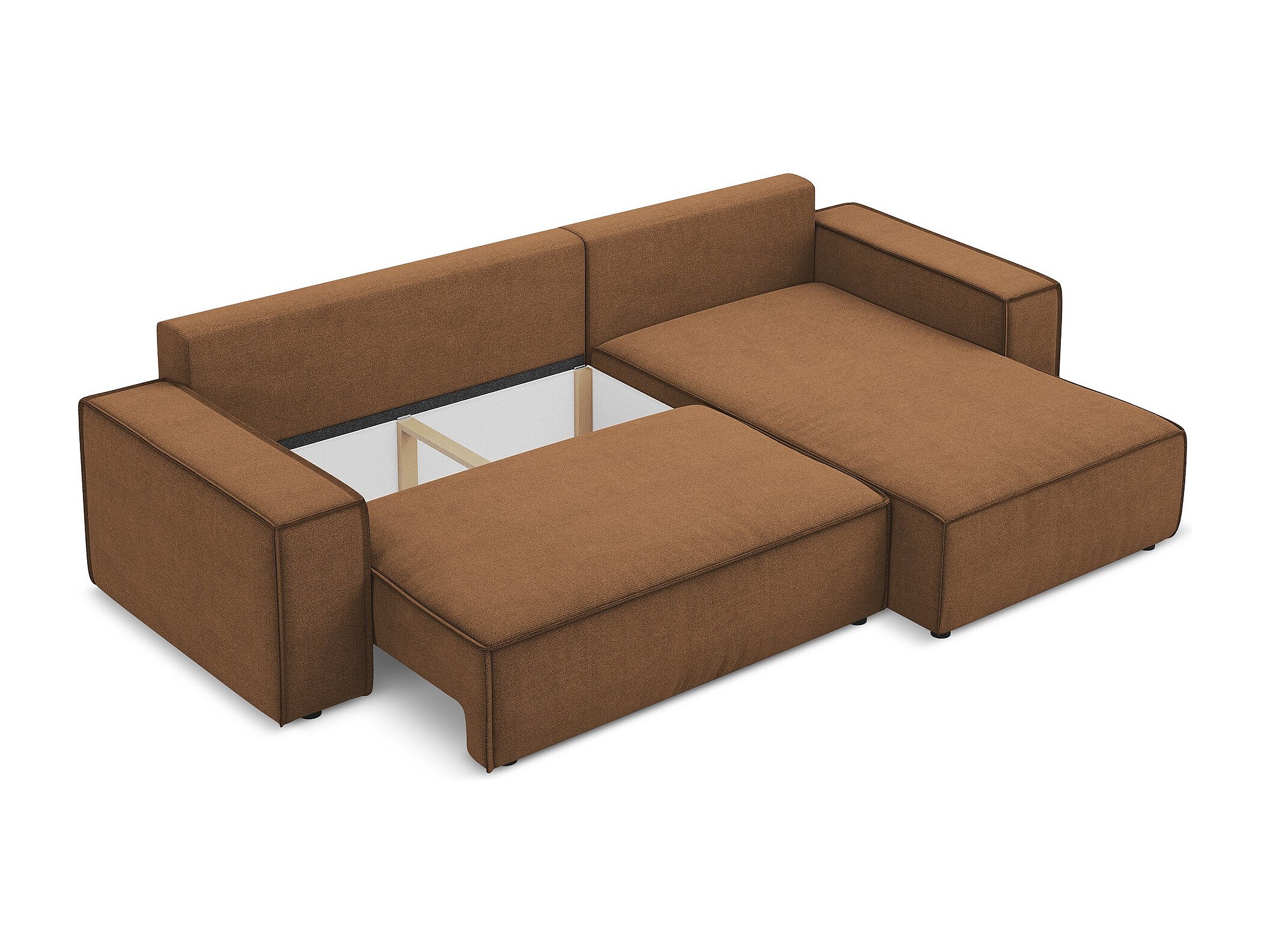 Canapé d’angle 3 places droit convertible en tissu texturé - terracotta foncé - KAPUA