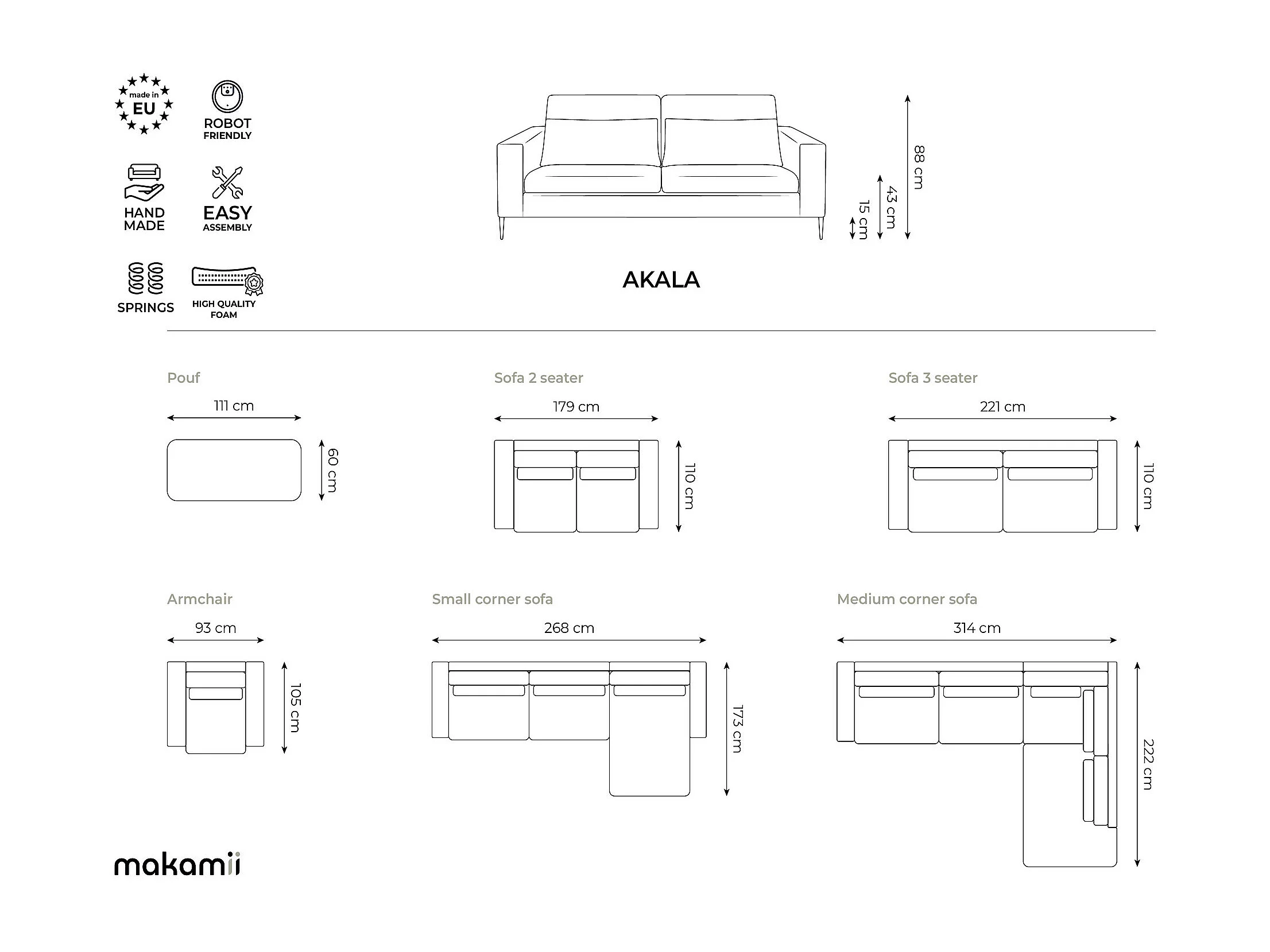 Canapé d’angle 3 places droit en tissu chenille - beige - AKALA