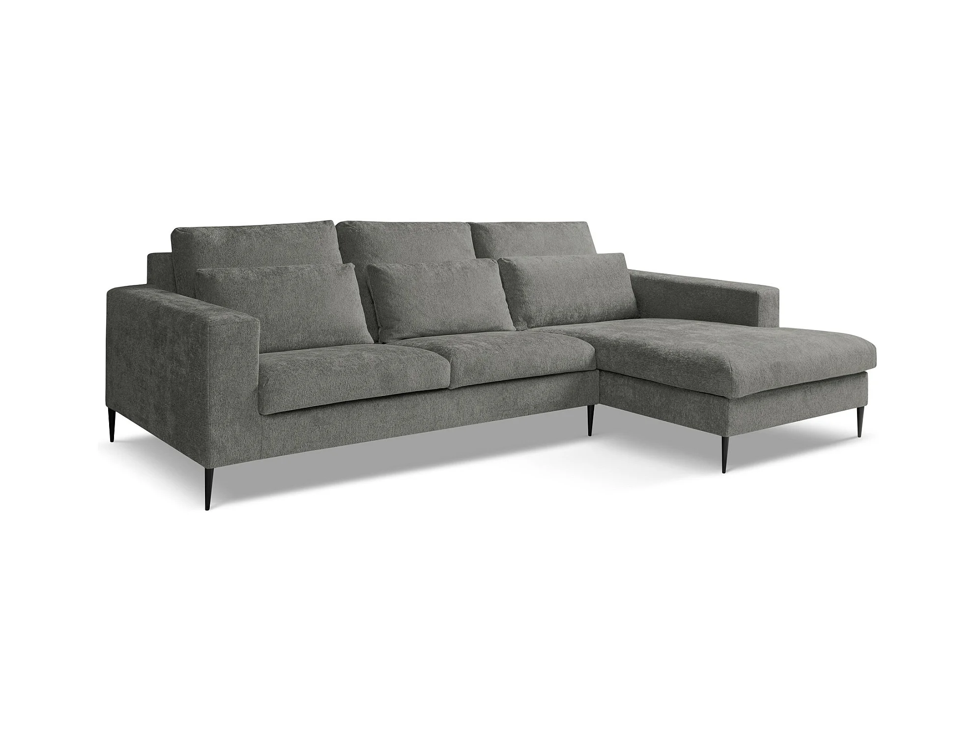 Canapé d’angle 3 places droit en tissu chenille - gris foncé - AKALA