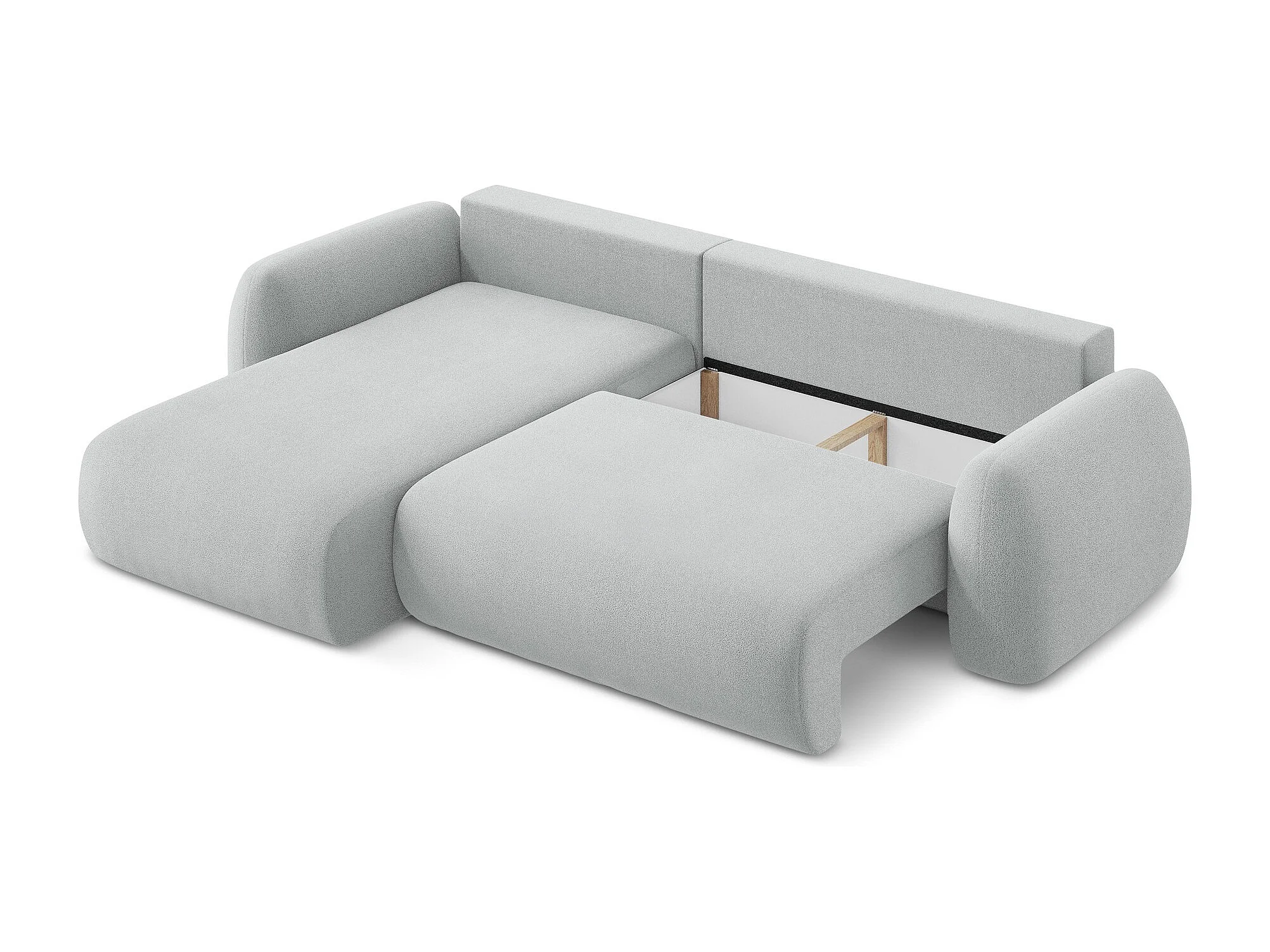 Canapé d’angle 3 places gauche convertible en tissu bouclette - gris clair - LOHI