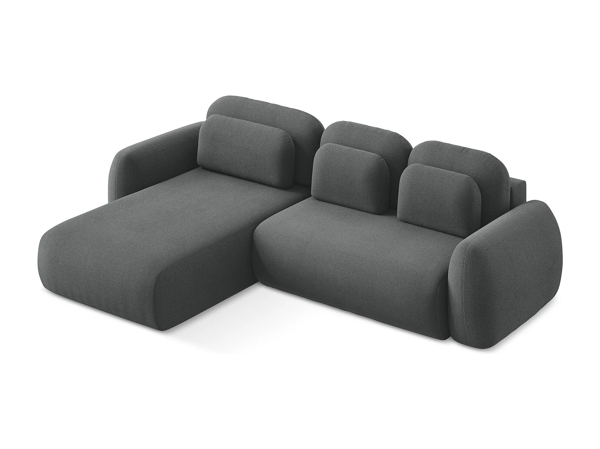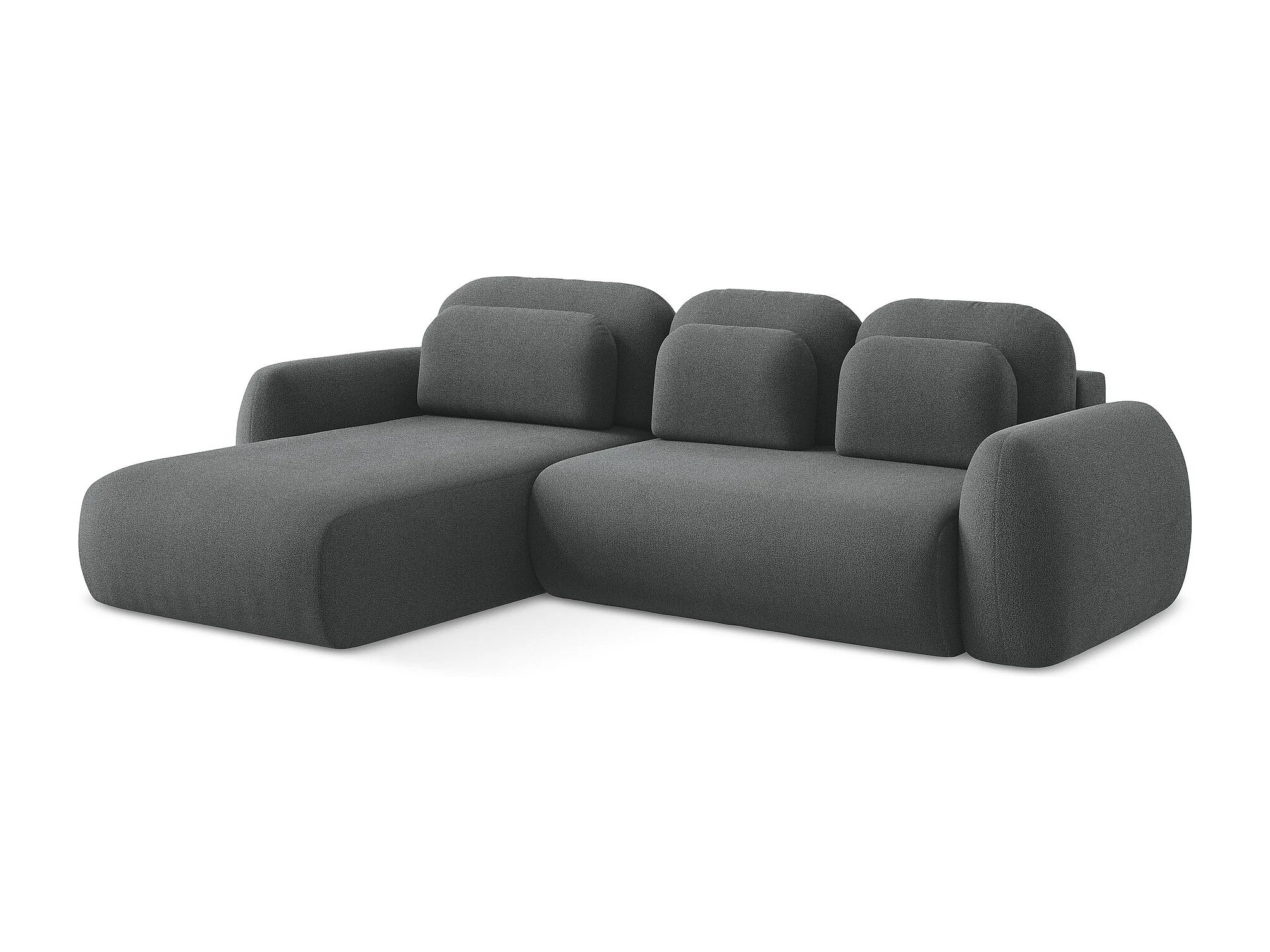 Canapé d’angle 3 places gauche convertible en tissu bouclette - gris foncé - LOHI