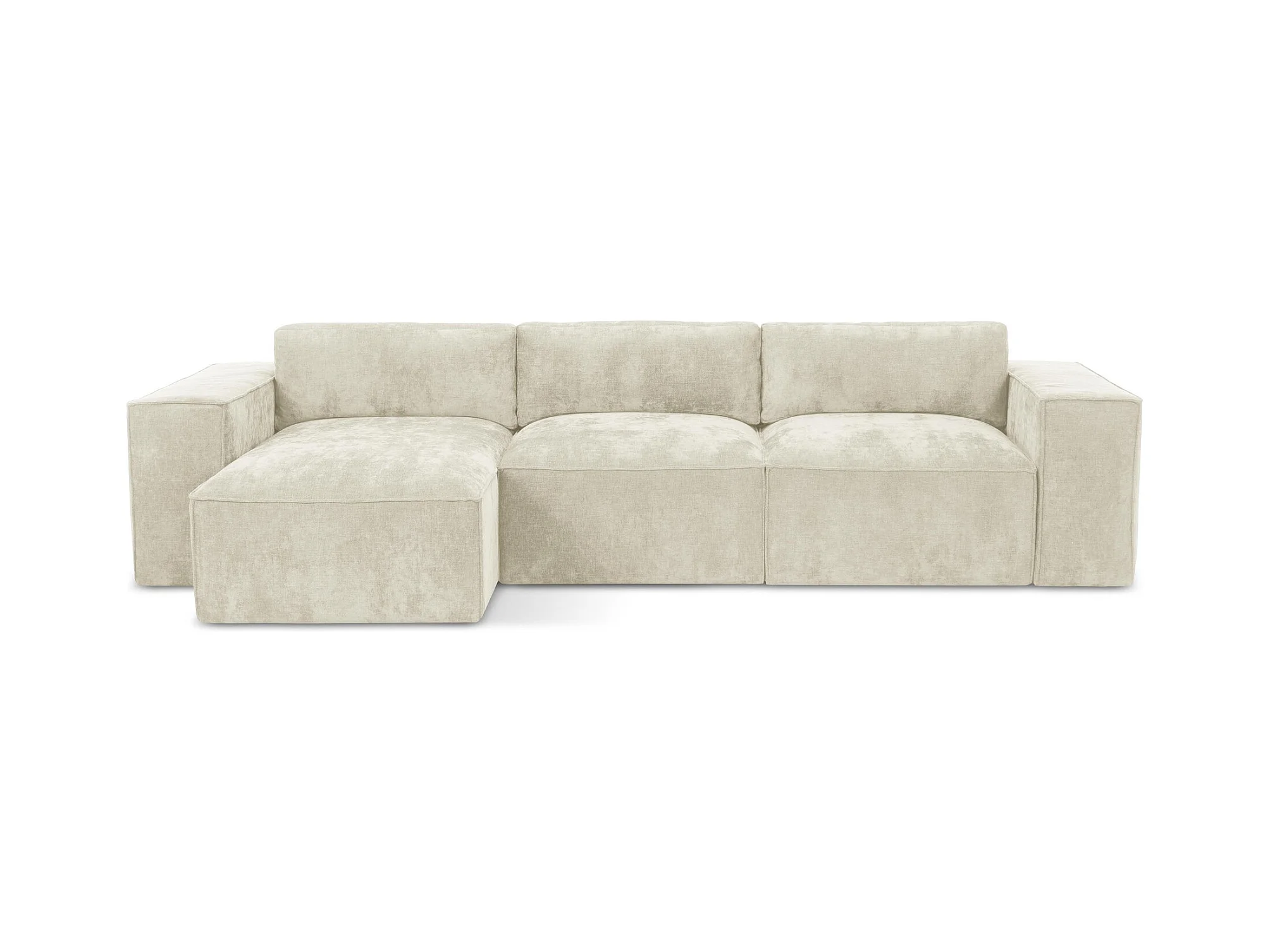 Canapé d'angle droit convertible en tissu chenille - beige - LOHI