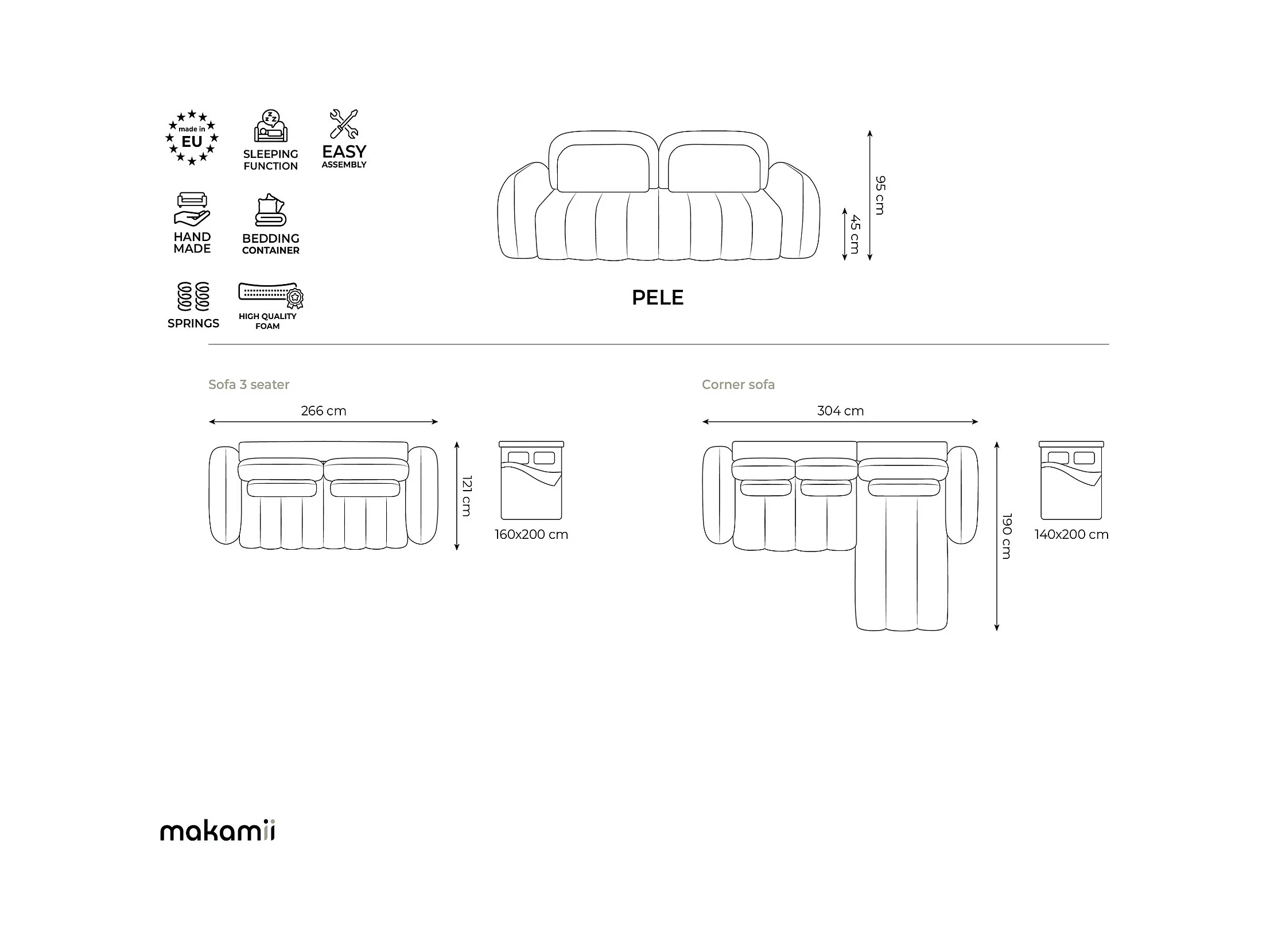Canapé d’angle 3 places gauche convertible en tissu chenille - gris foncé - PELE