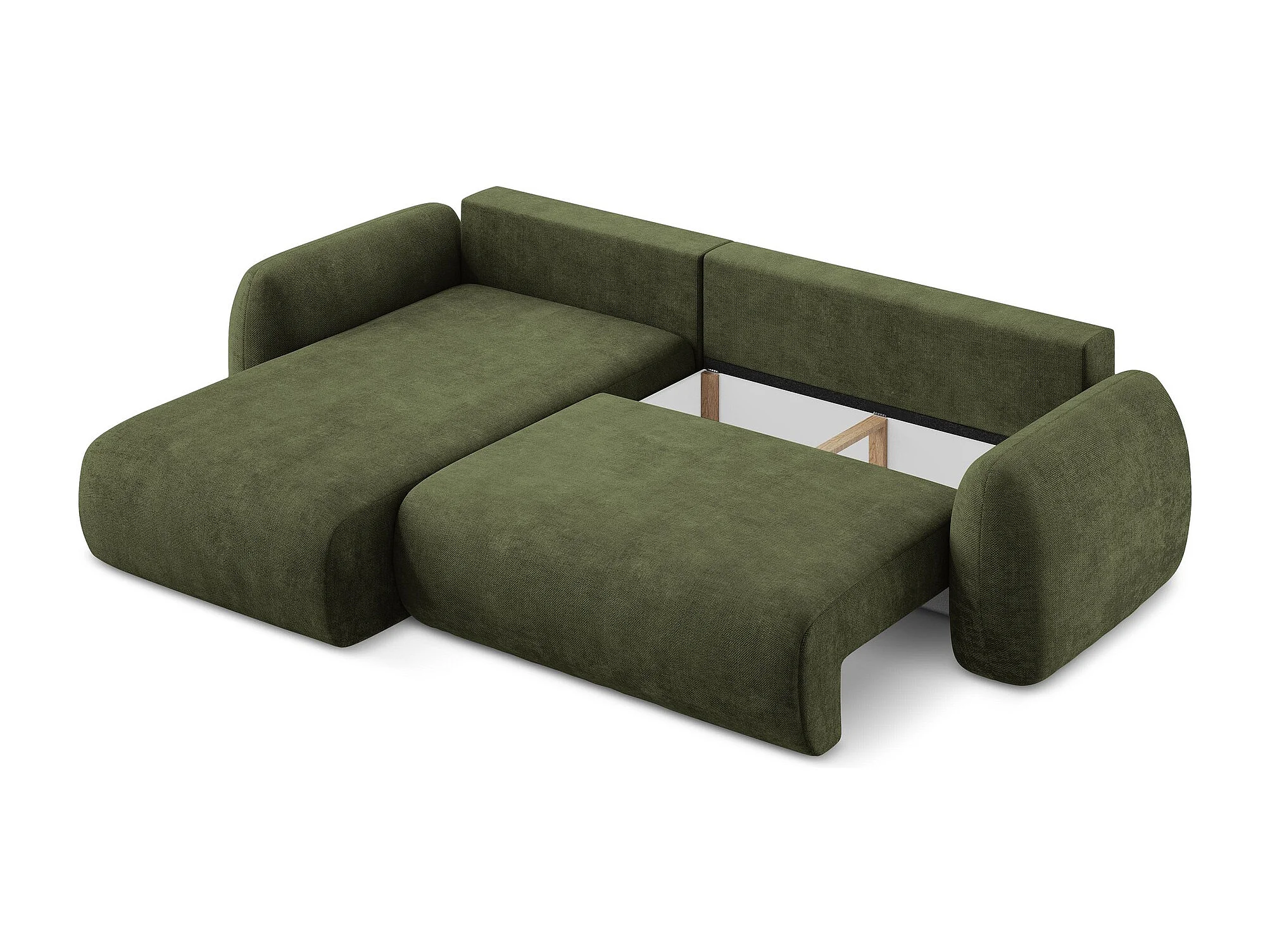Canapé d’angle 3 places gauche convertible en tissu chenille - olive - LOHI