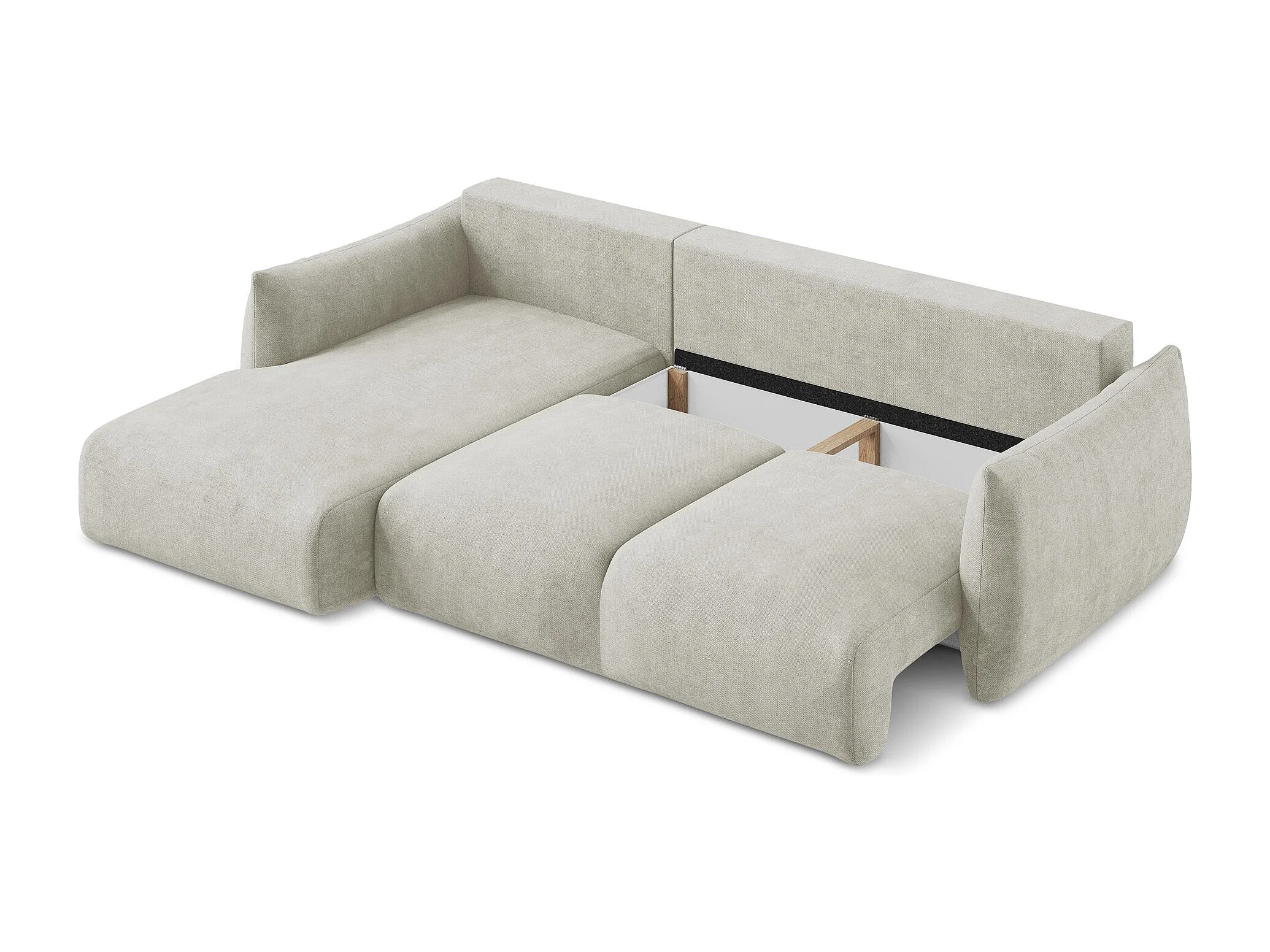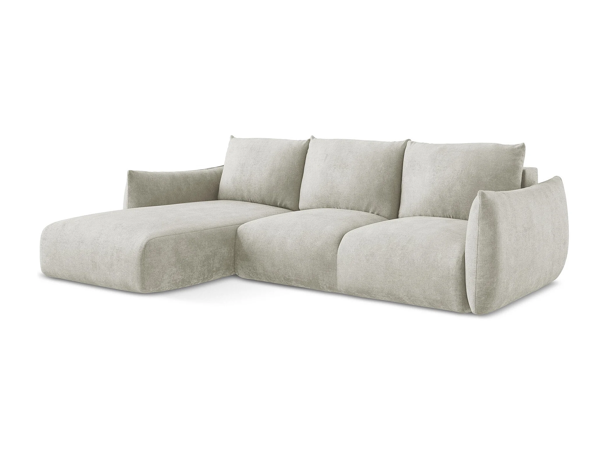 Canapé d’angle 3 places gauche convertible en tissu chenille - perle - LOHI