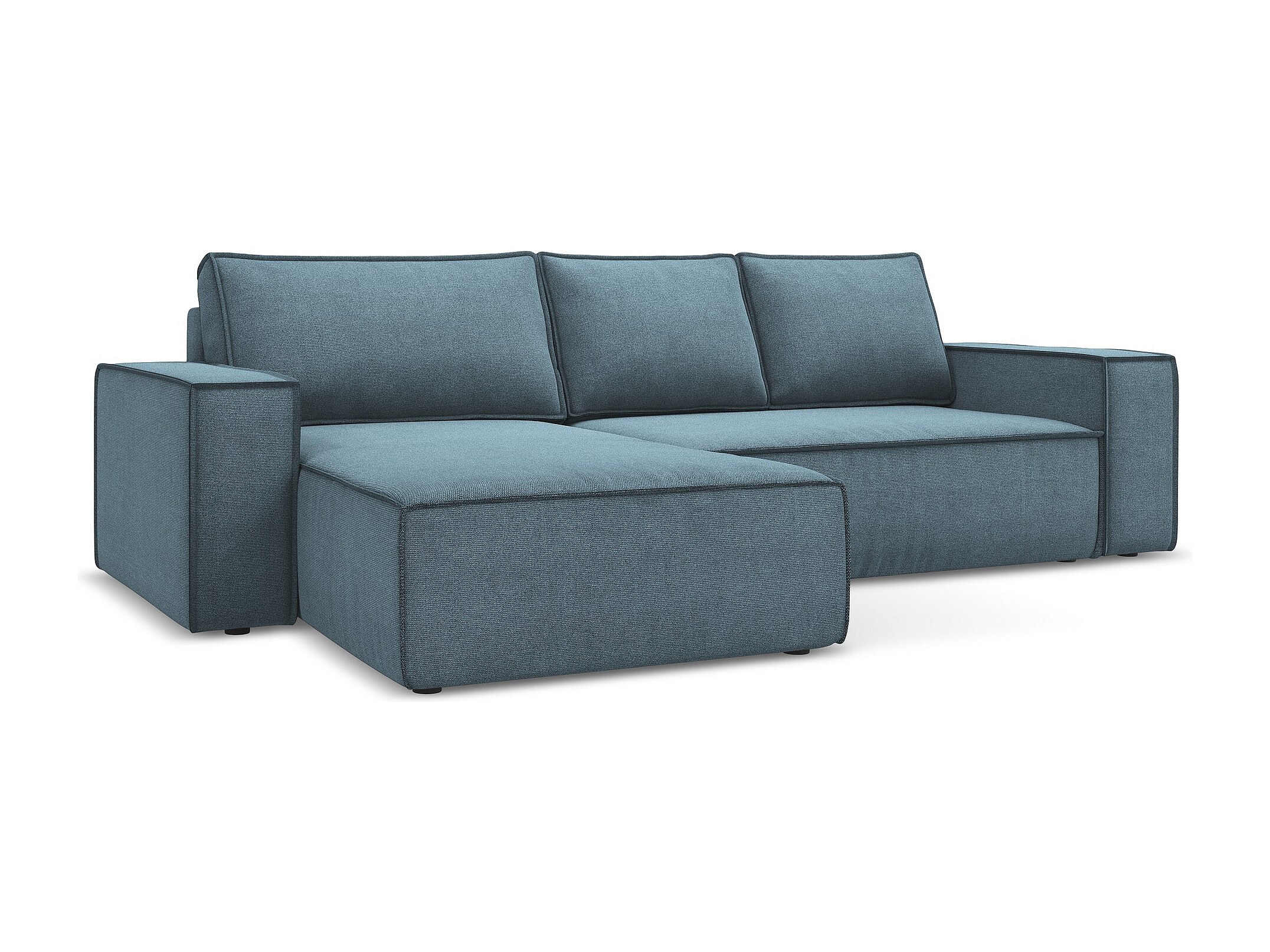 Canapé d’angle 3 places gauche convertible en tissu texturé - bleu clair - KIMO