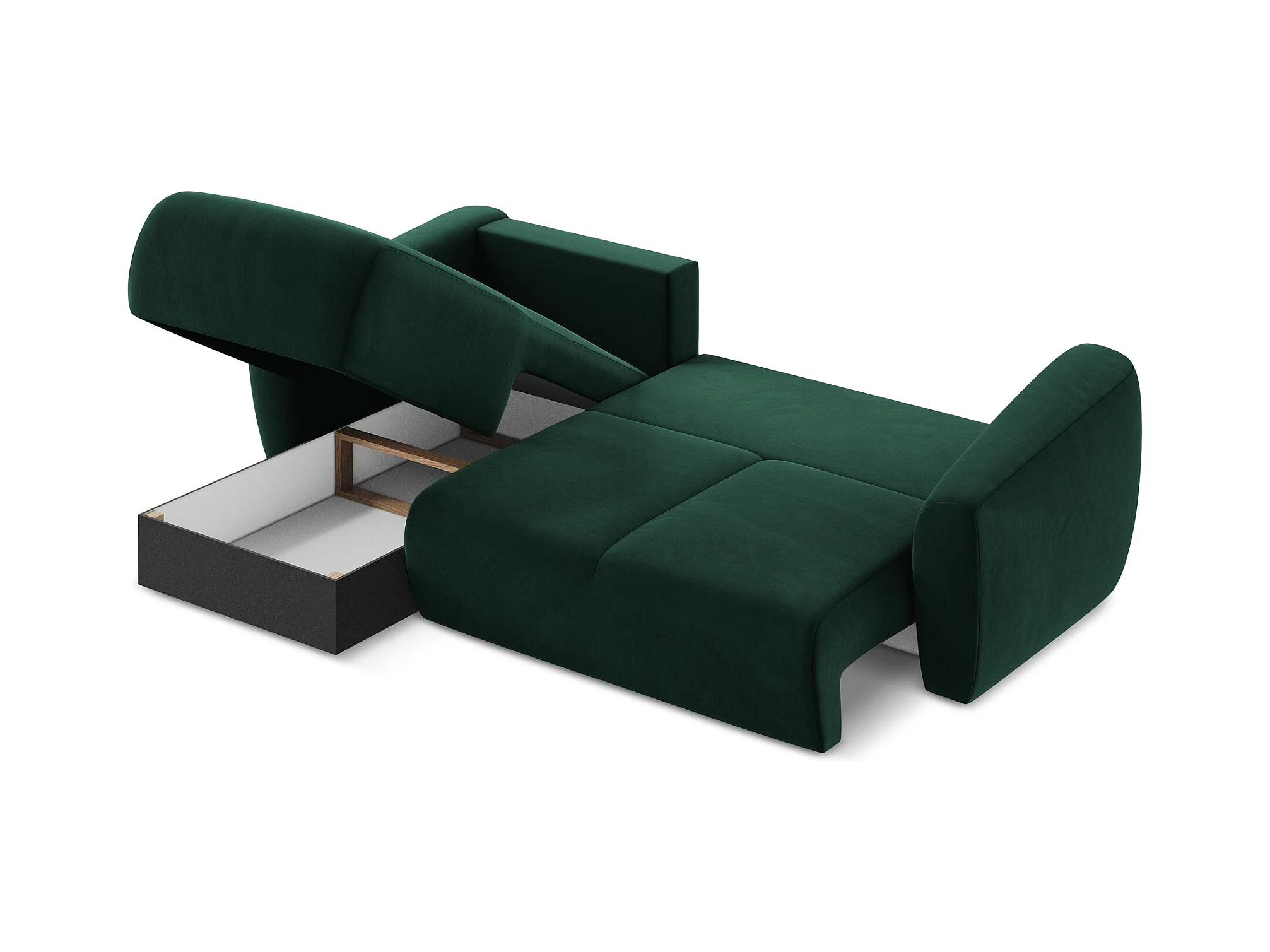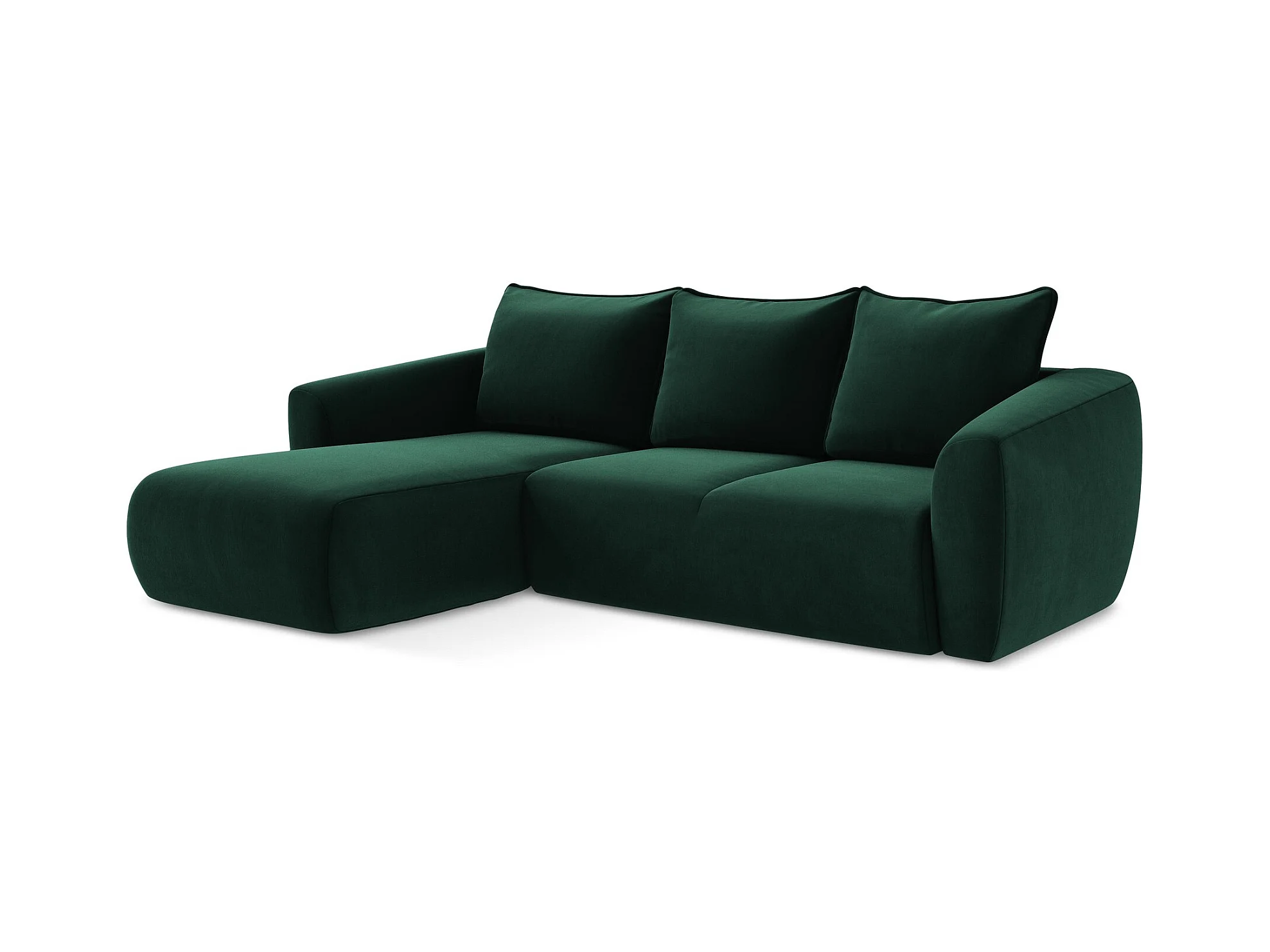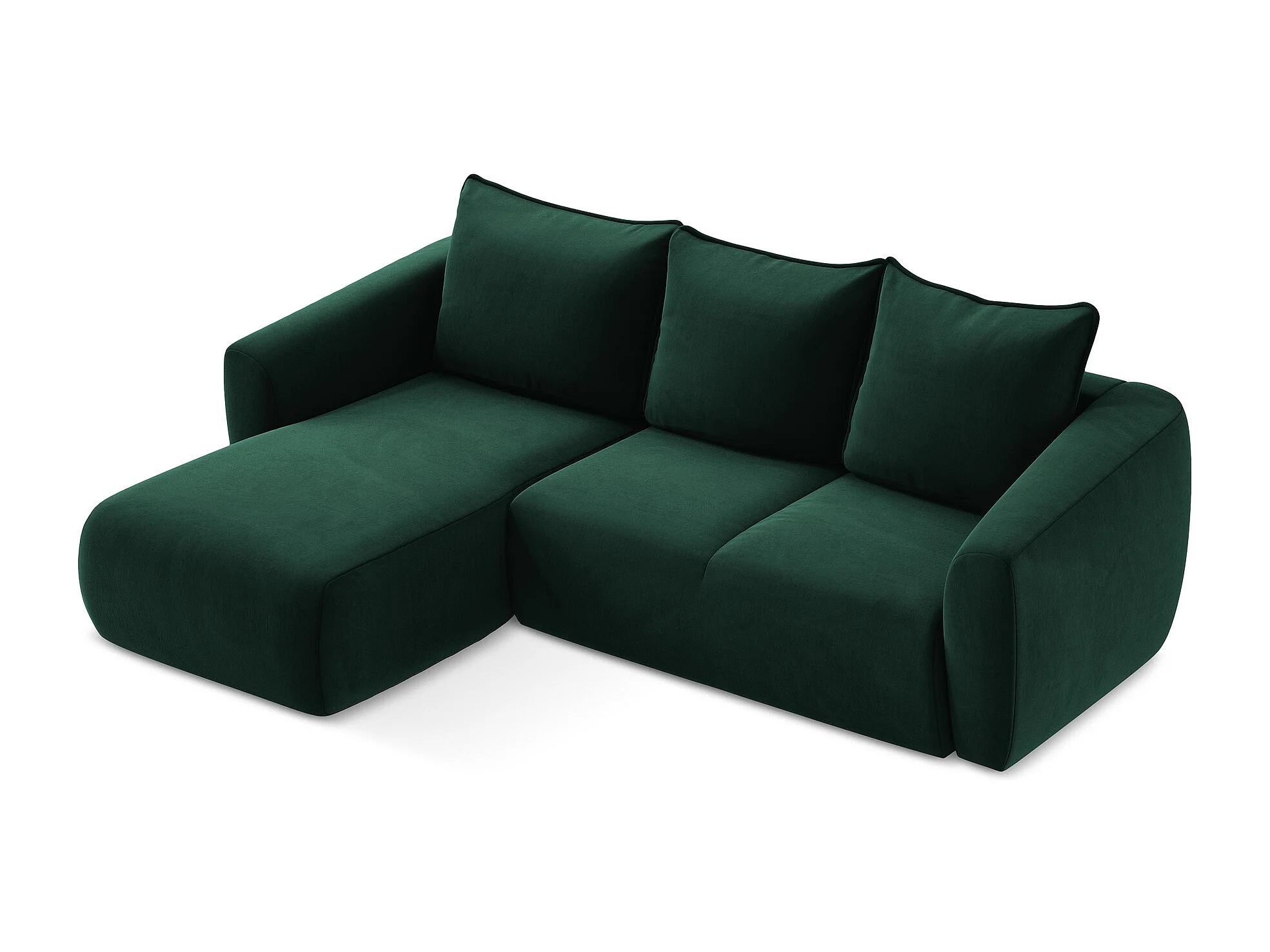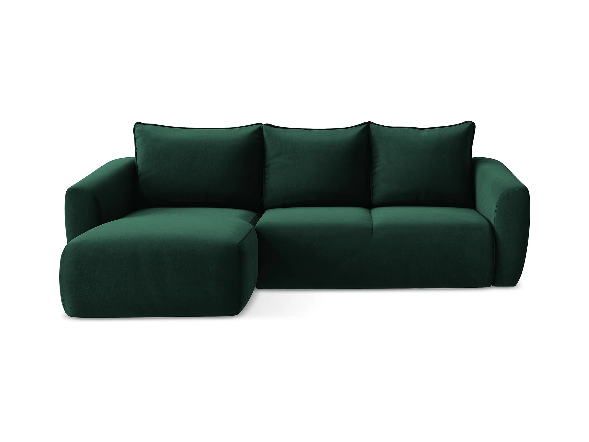 Canapé d’angle 3 places gauche convertible en velours - bouteille verte - GUAVA