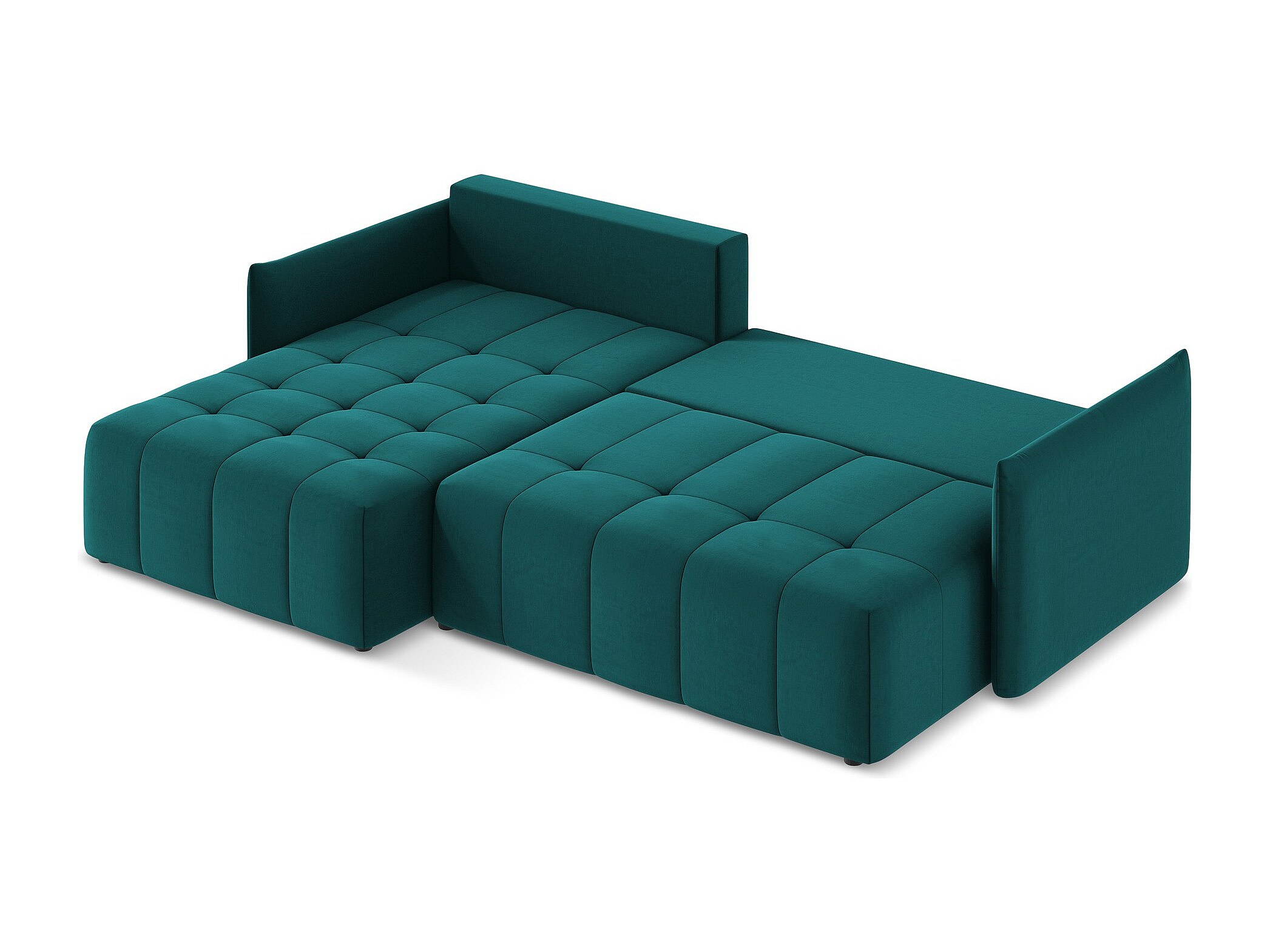 Canapé d'angle droit convertible en velours - marin - MOKU