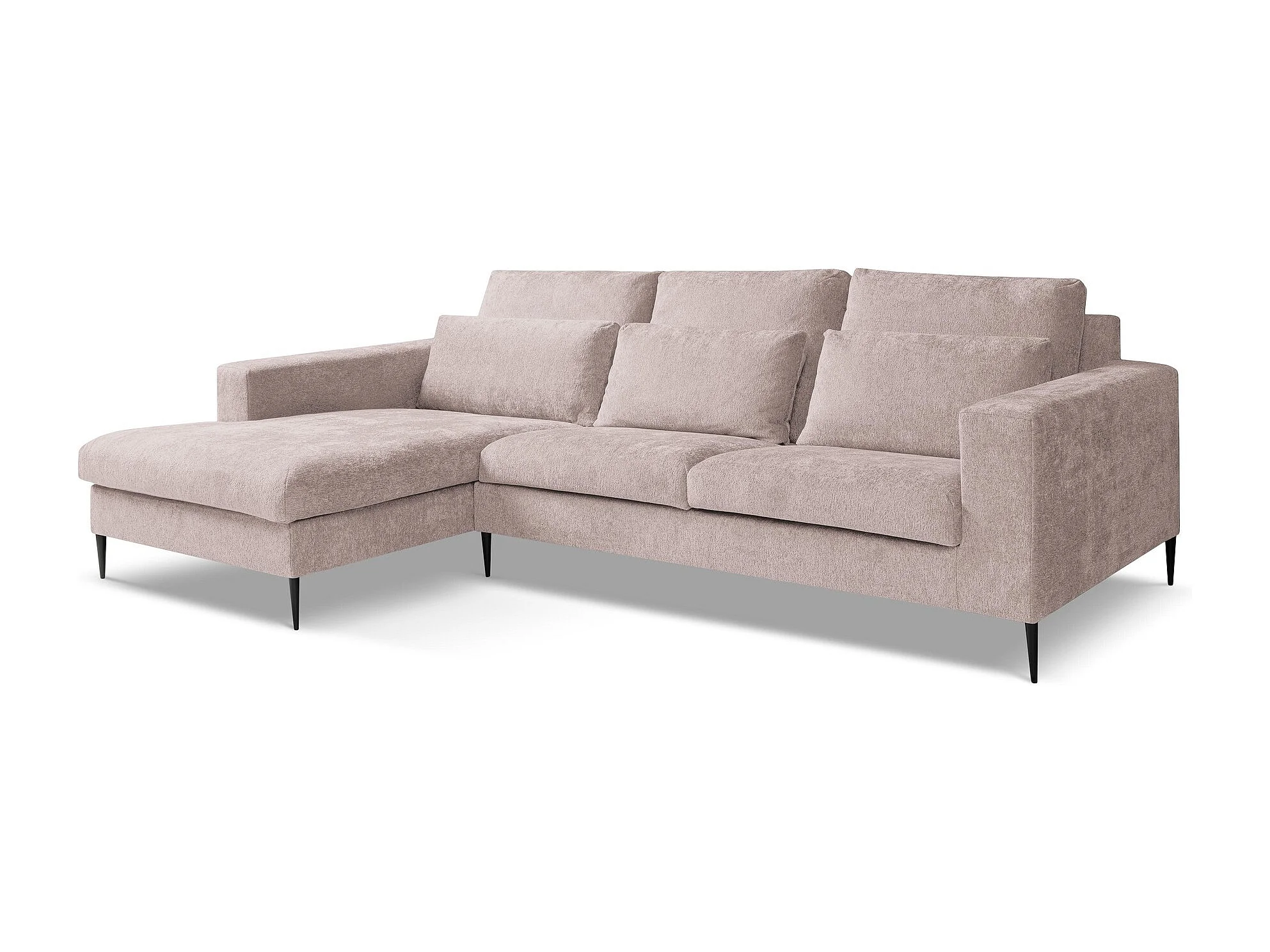 Canapé d’angle 3 places gauche en tissu chenille - rose poudré - AKALA