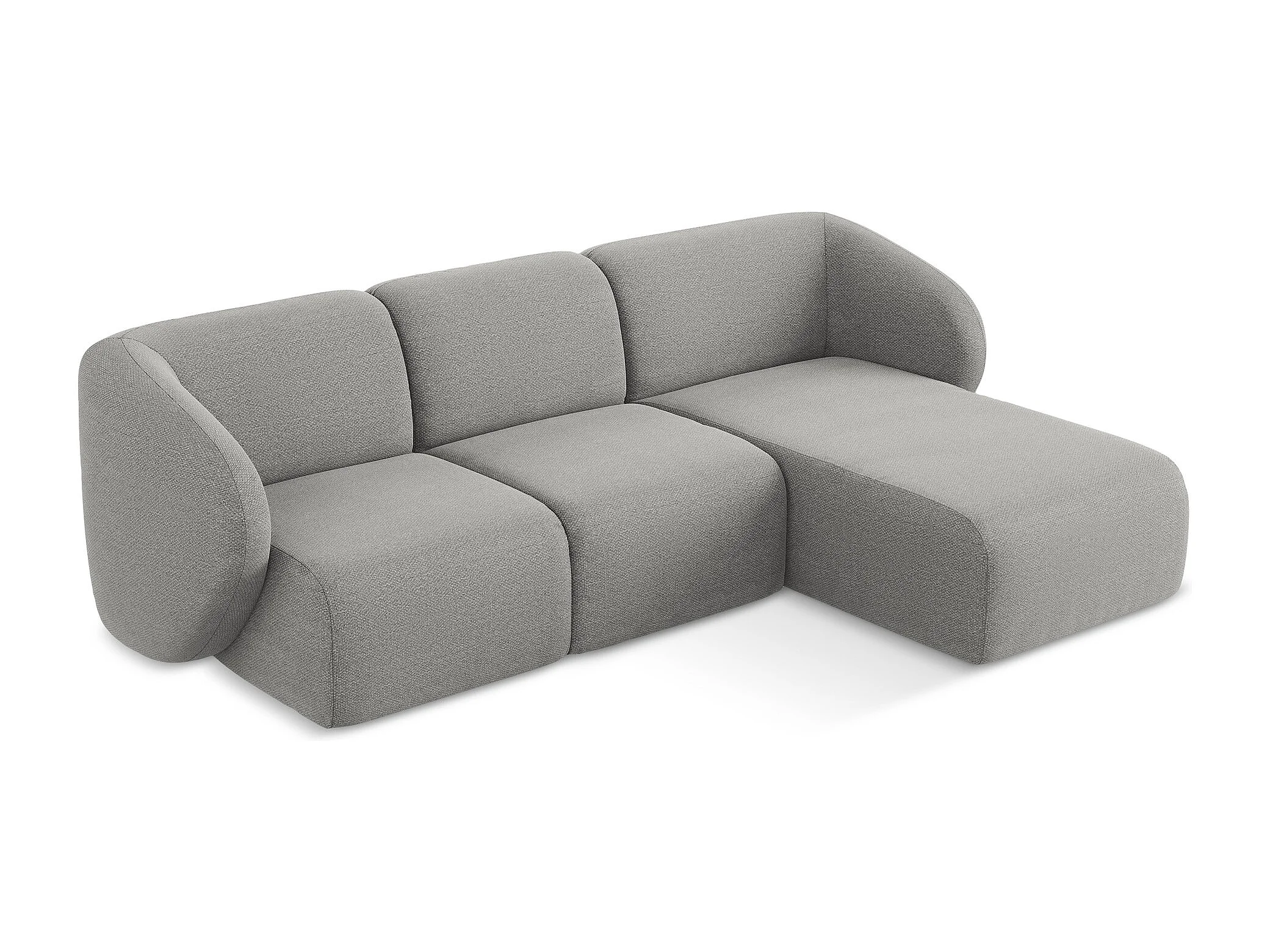 Canapé d'angle 3 places modulaire droit en tissu bouclette - gris clair - LANI