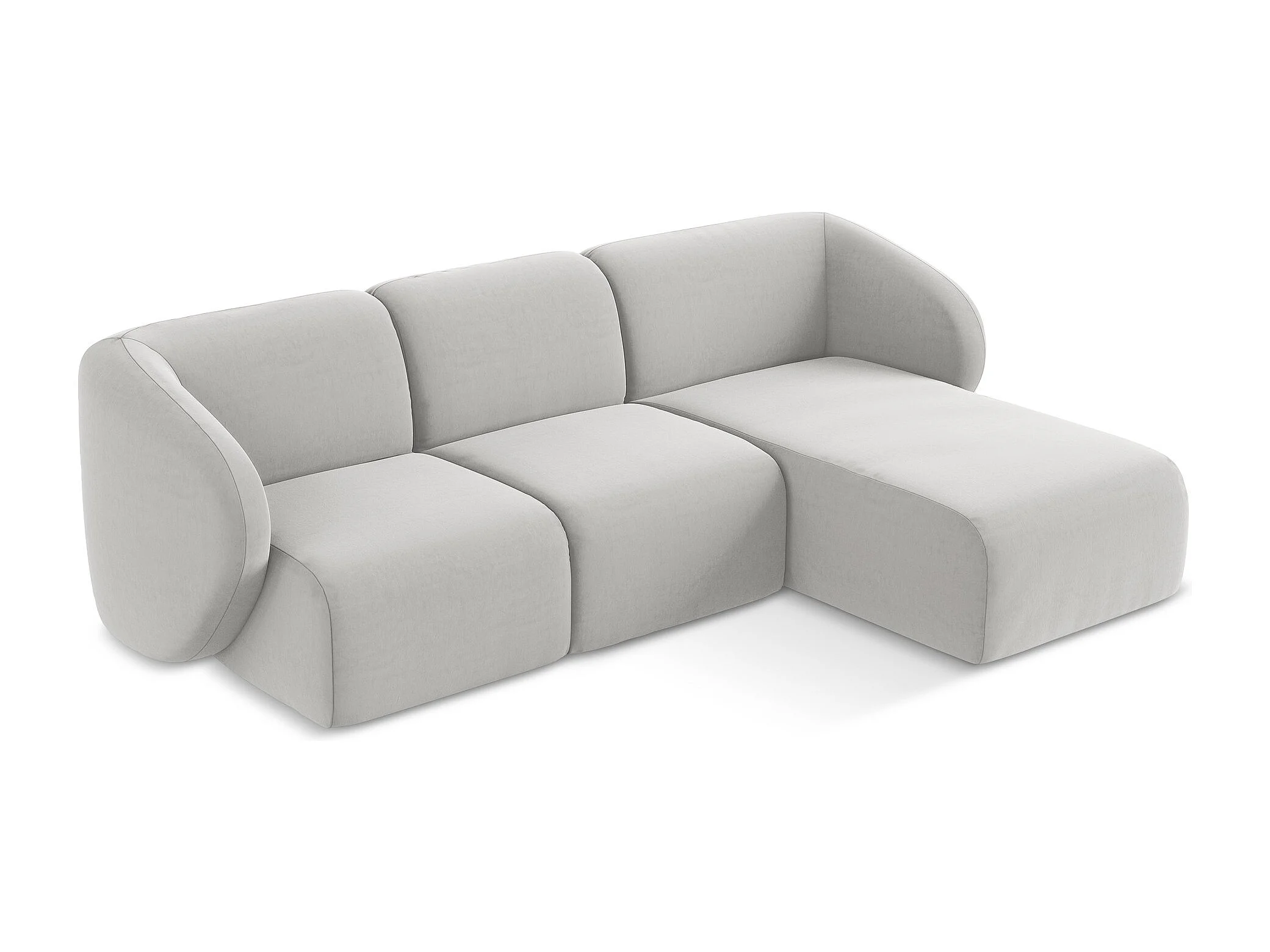 Canapé d'angle 3 places modulaire droit en velours - argent - LANI