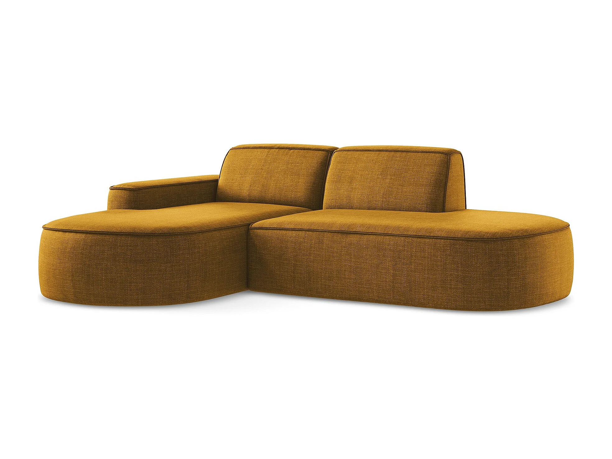 Canapé d'angle, canapé en L design Modena tissu pur Poso couleur moutarde Gauche