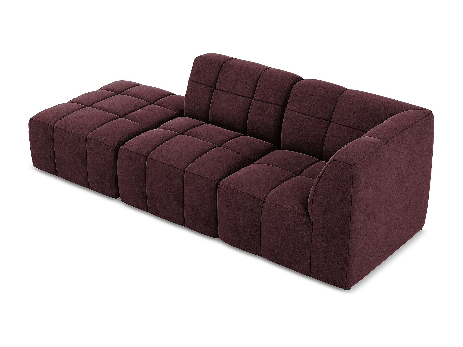 Canapé d'angle 3 places modulaire droit en velours - bourgogne - ALOHA