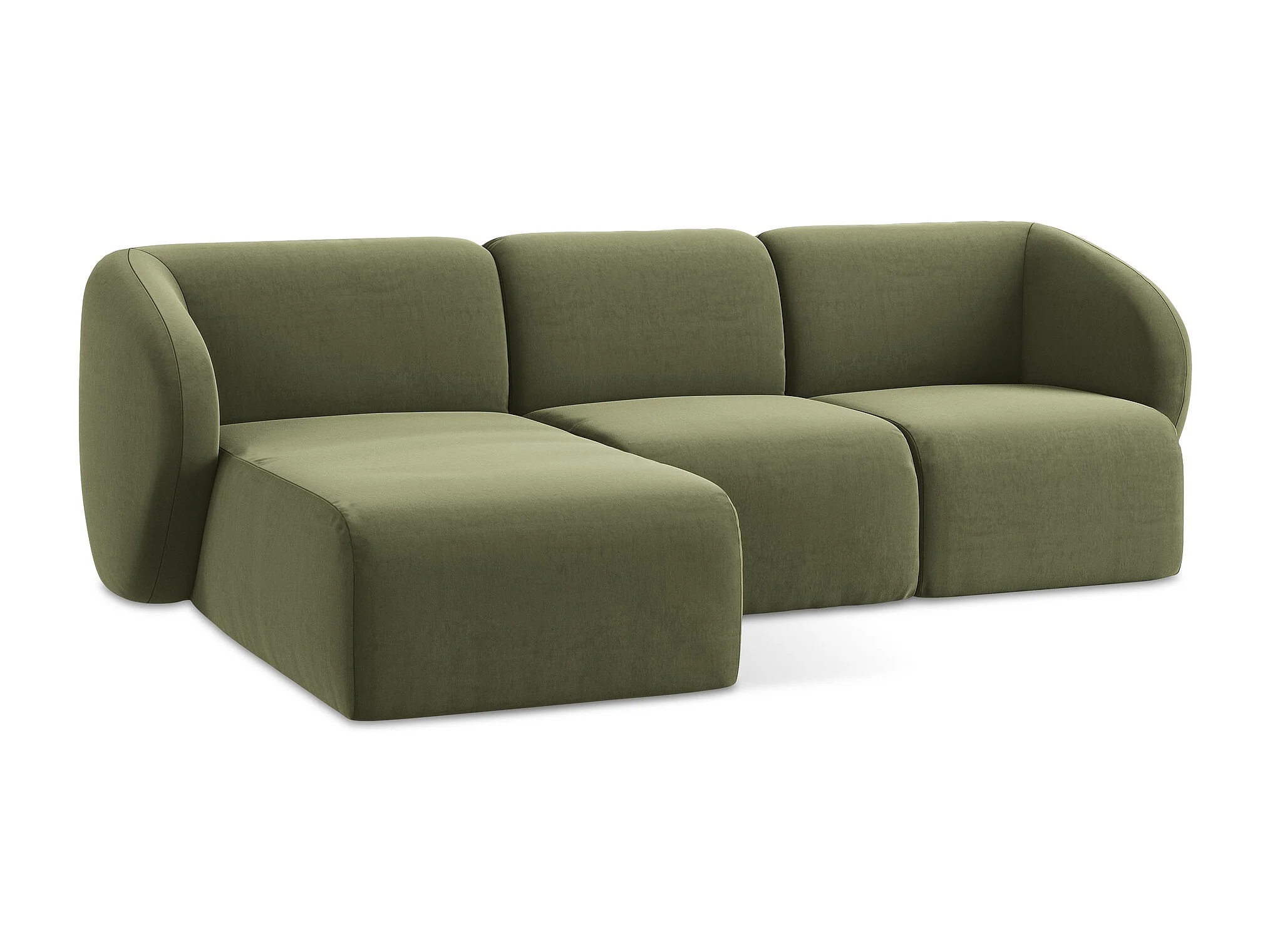Canapé d'angle 3 places modulaire gauche en velours - olive - LANI