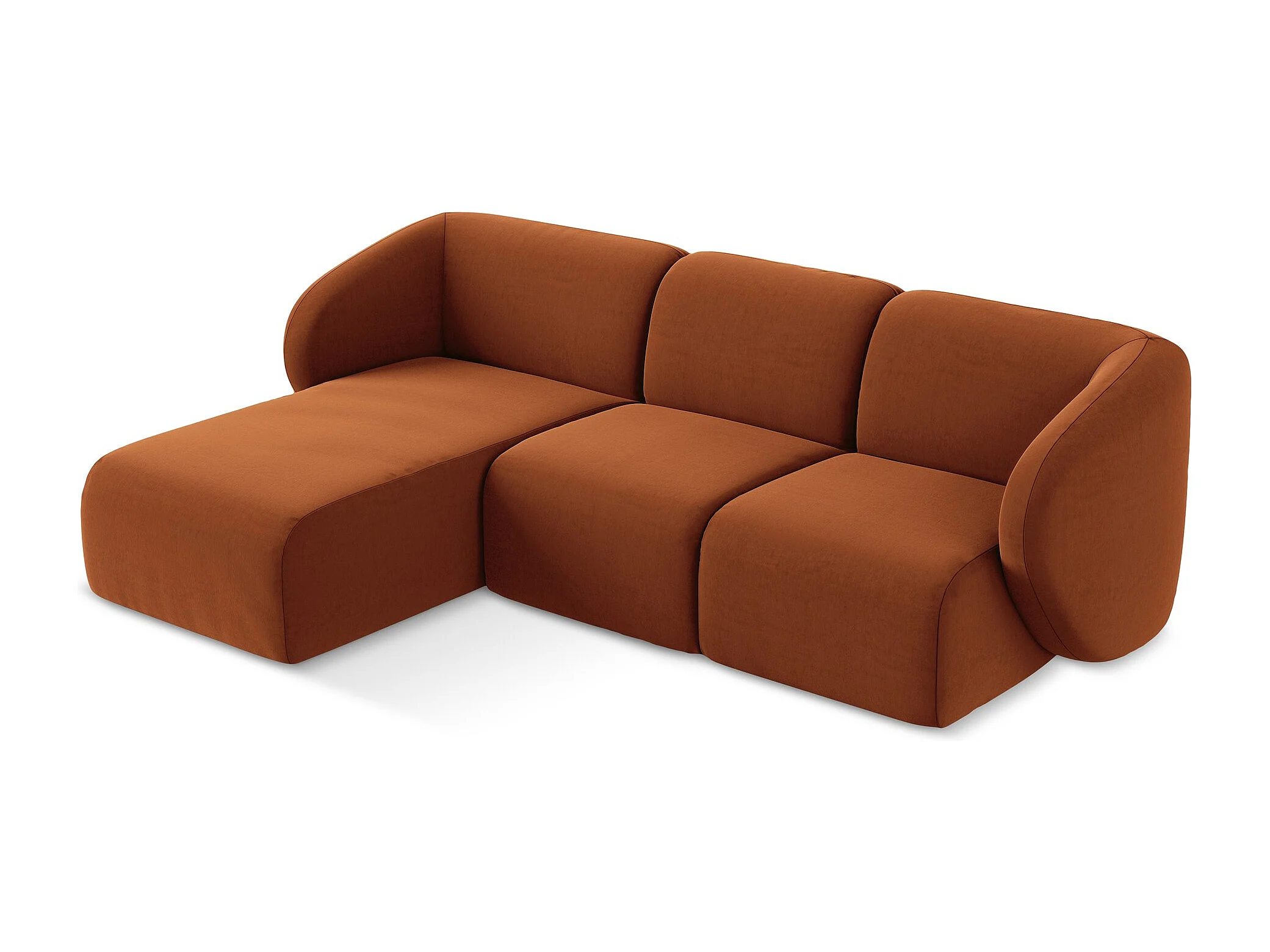 Canapé d'angle 3 places modulaire gauche en velours - terre cuite - LANI