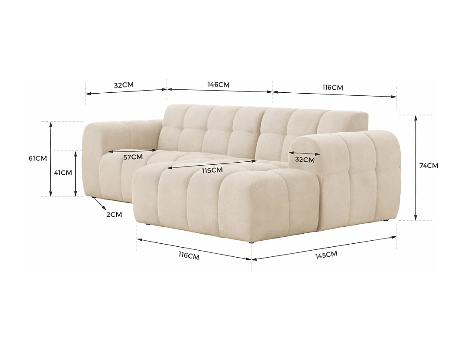 Canapé d'angle 3 places nuage en velours beige SALFORD