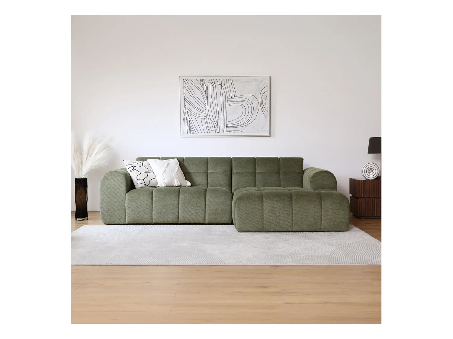 Canapé d'angle 3 places nuage en velours vert SALFORD
