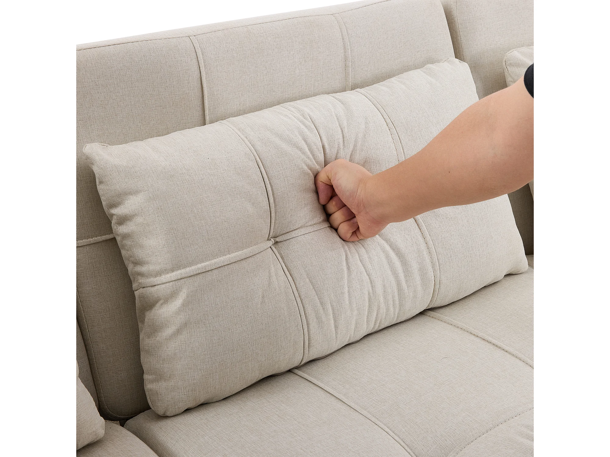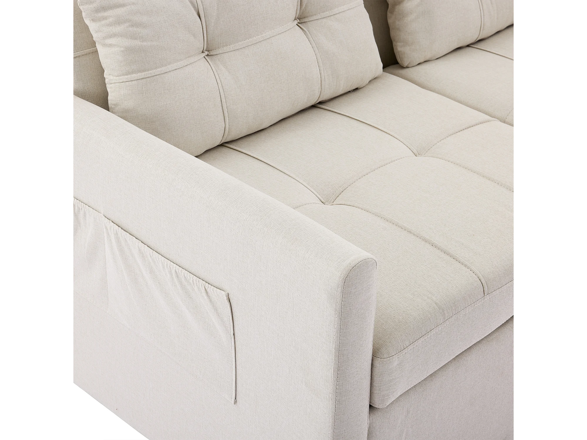 Canapé d'angle 3 places roulettes pour déplacement facile pliable pour invités tissu beige