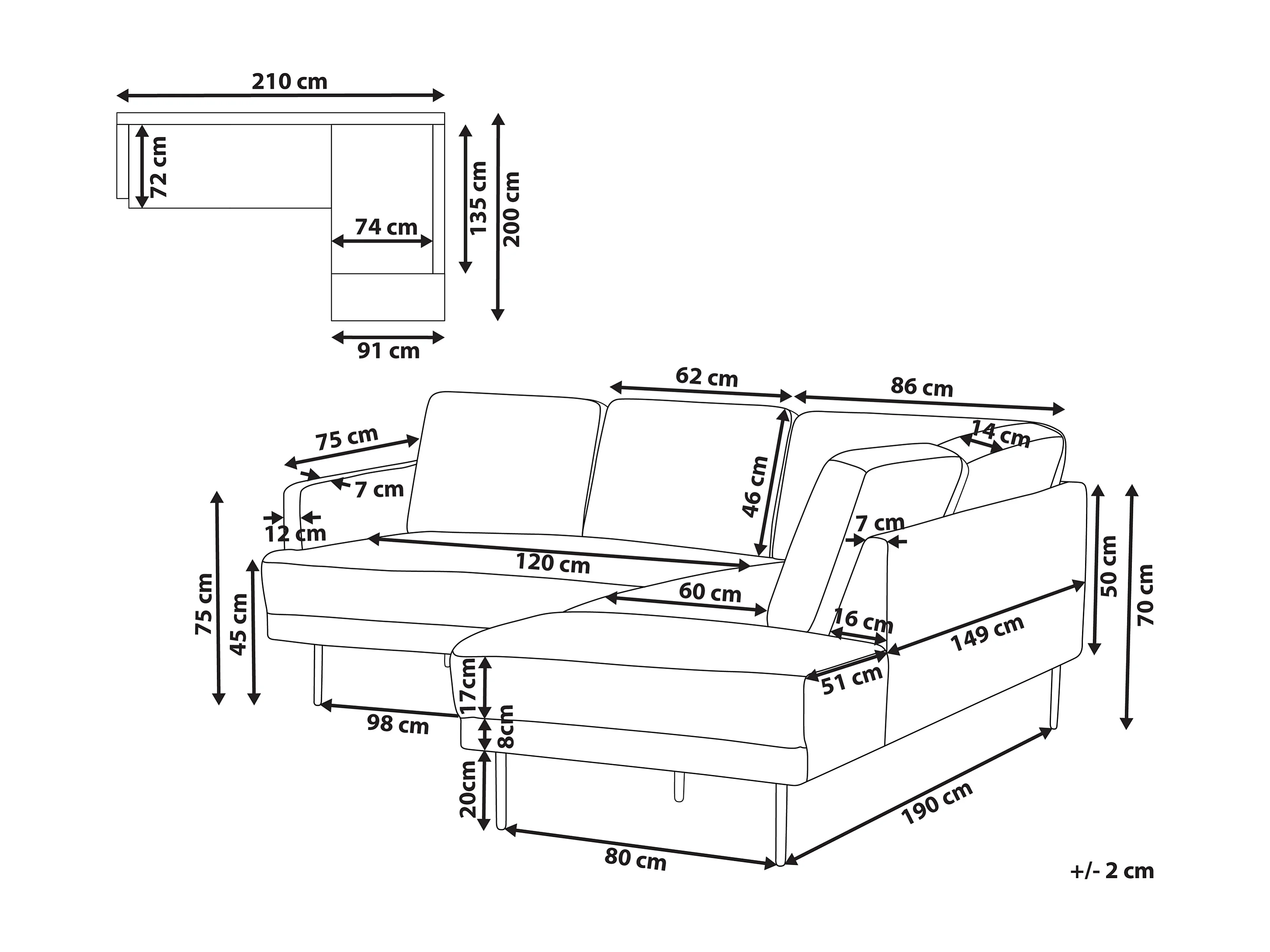 Canapé d'Angle Moderne Beige Côté Gauche 4 Places avec Pieds en Métal Noir Breda