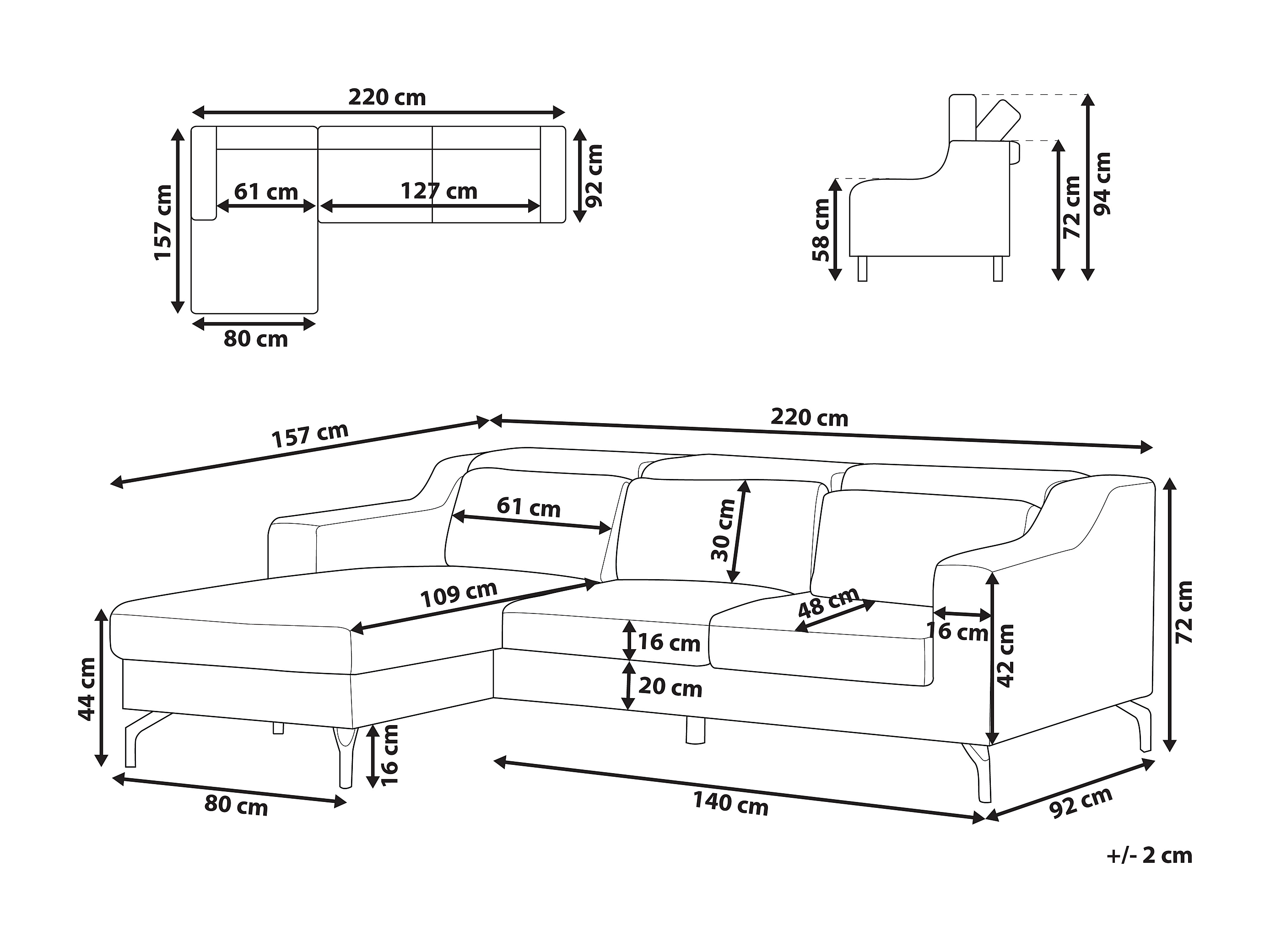 Canapé d'Angle à gauche 4 Places en Tissu Chenille Bleu Pieds Métal Noir Moderne Vinterbro